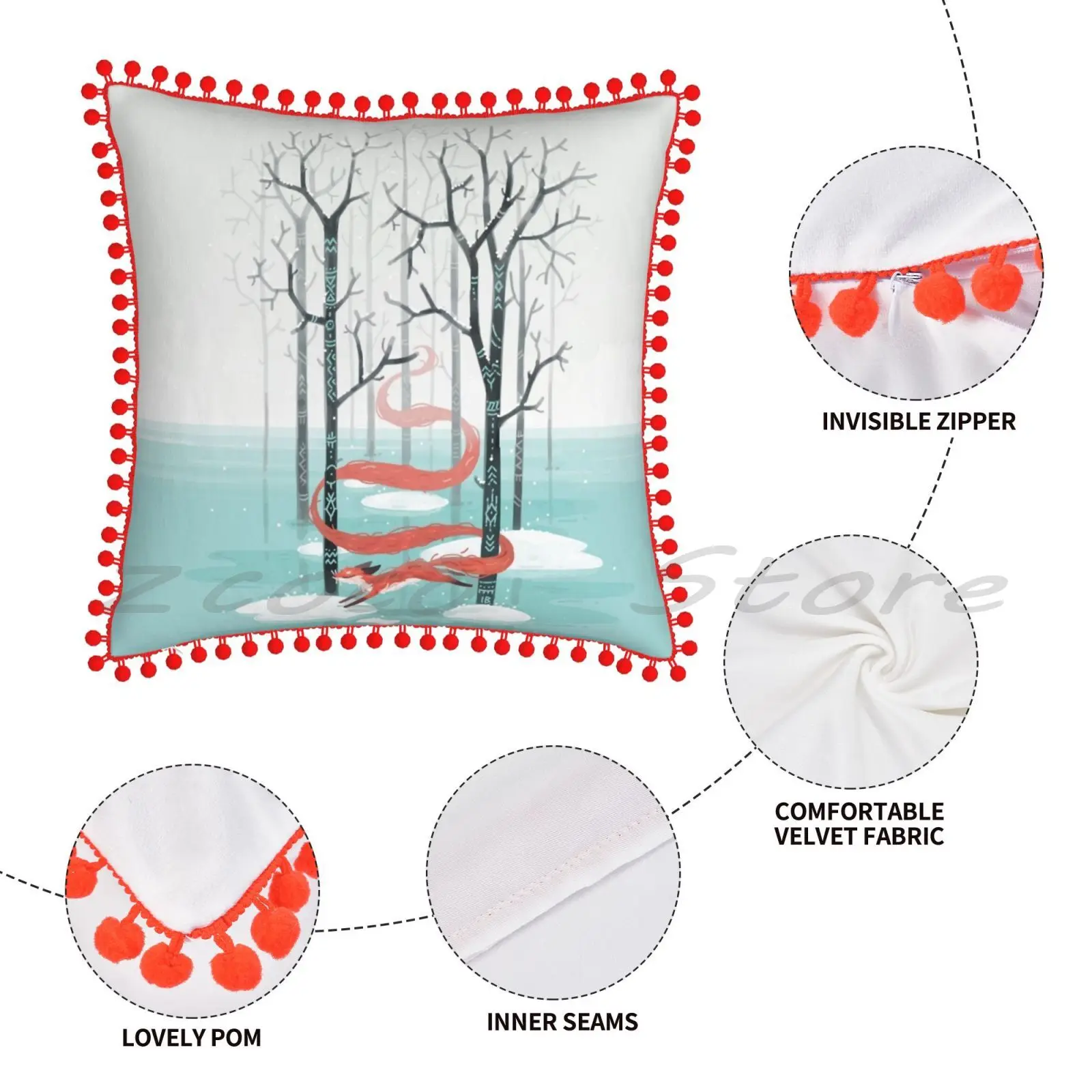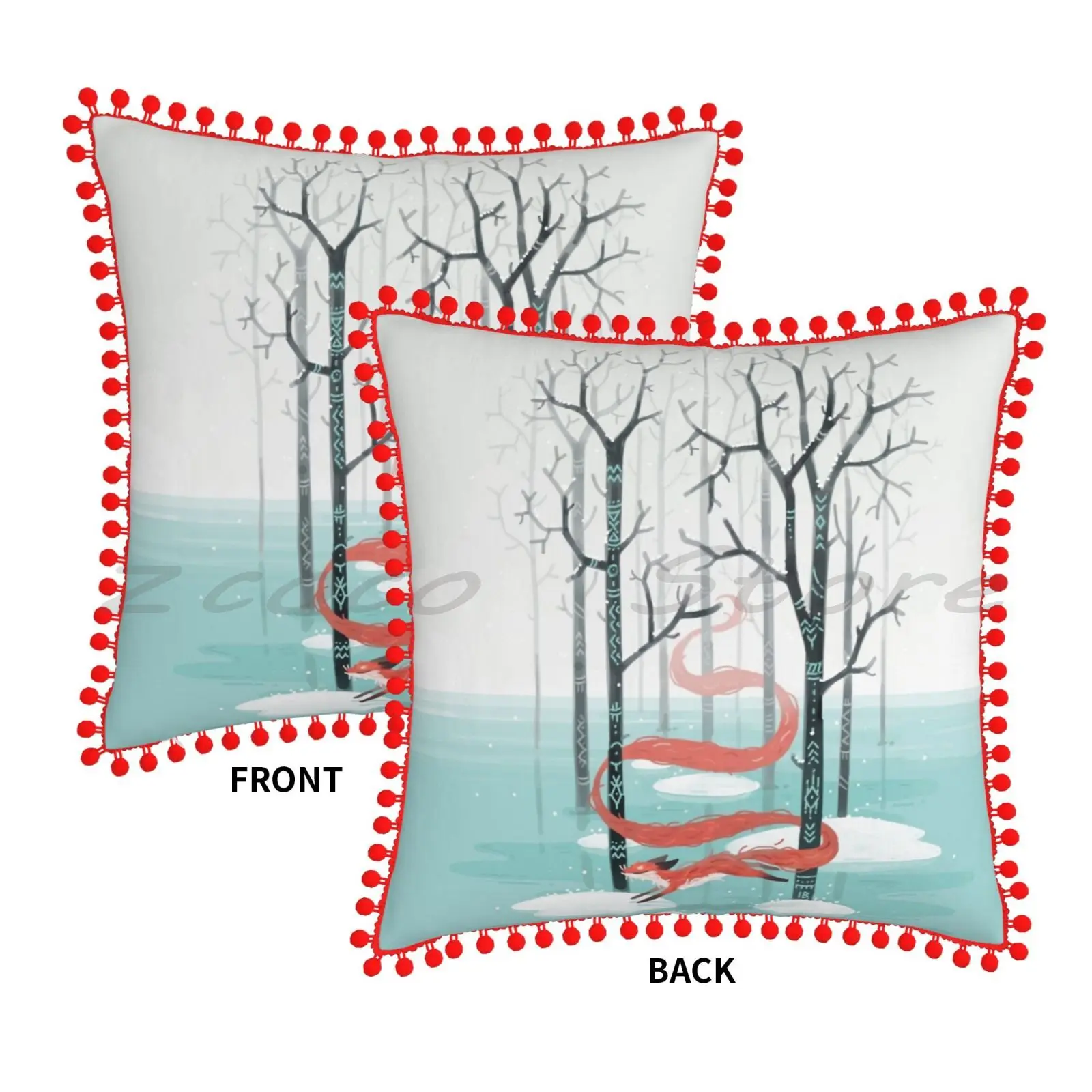 Чехол-наволочка из льняной плюшевой ткани с принтом леса и душа