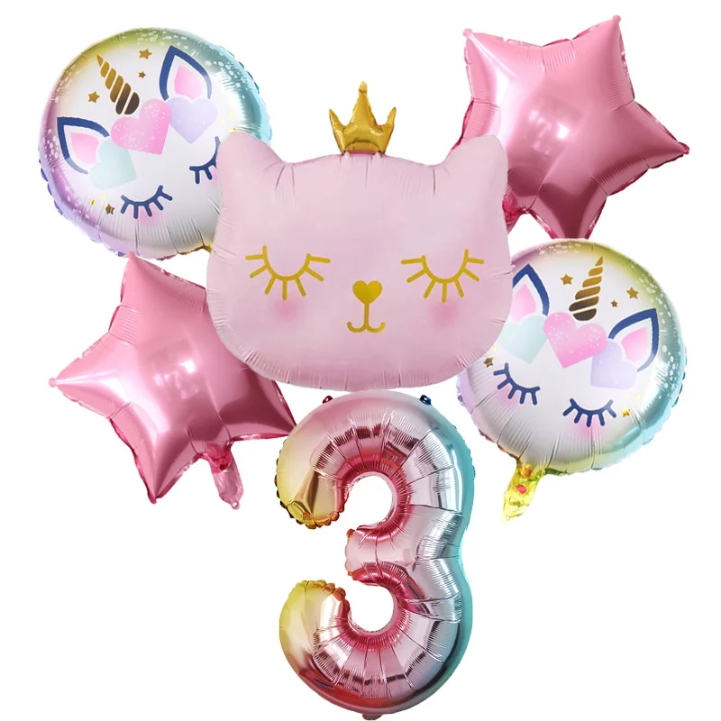 6 шт. милый розовый Кот шар 0 1 2 3 4 5 6 7 8 количество фольги шары Единорог кошка тематическая вечеринка на день рождения украшение для детского душа Globos