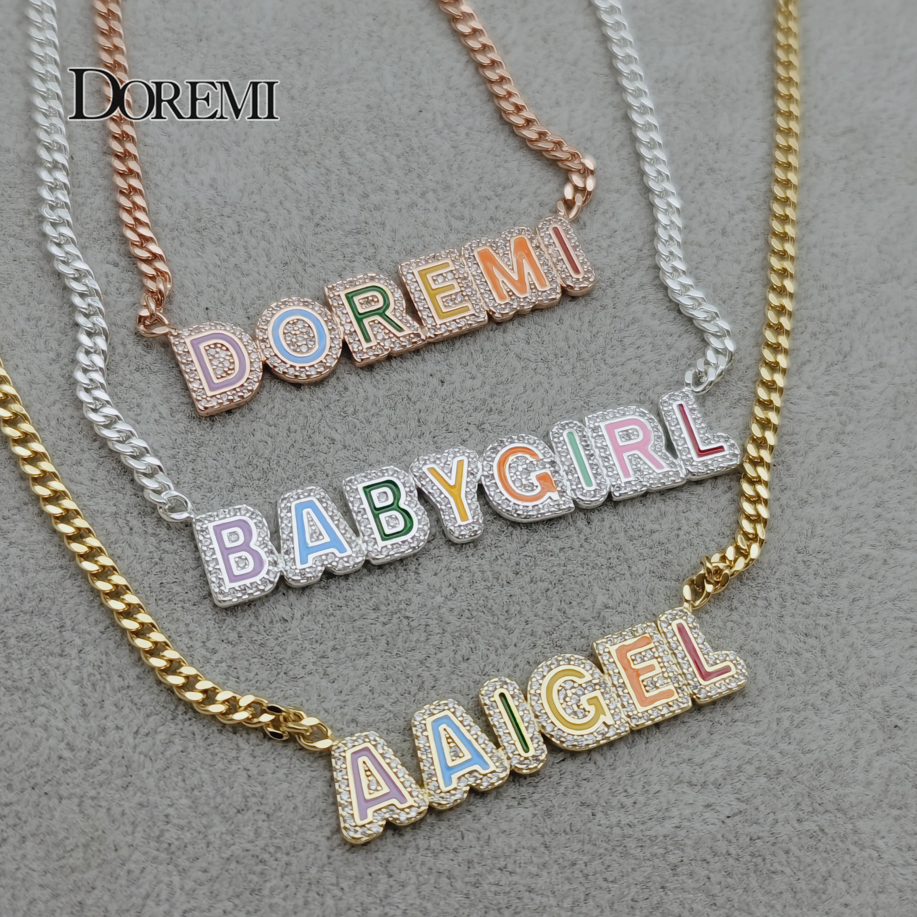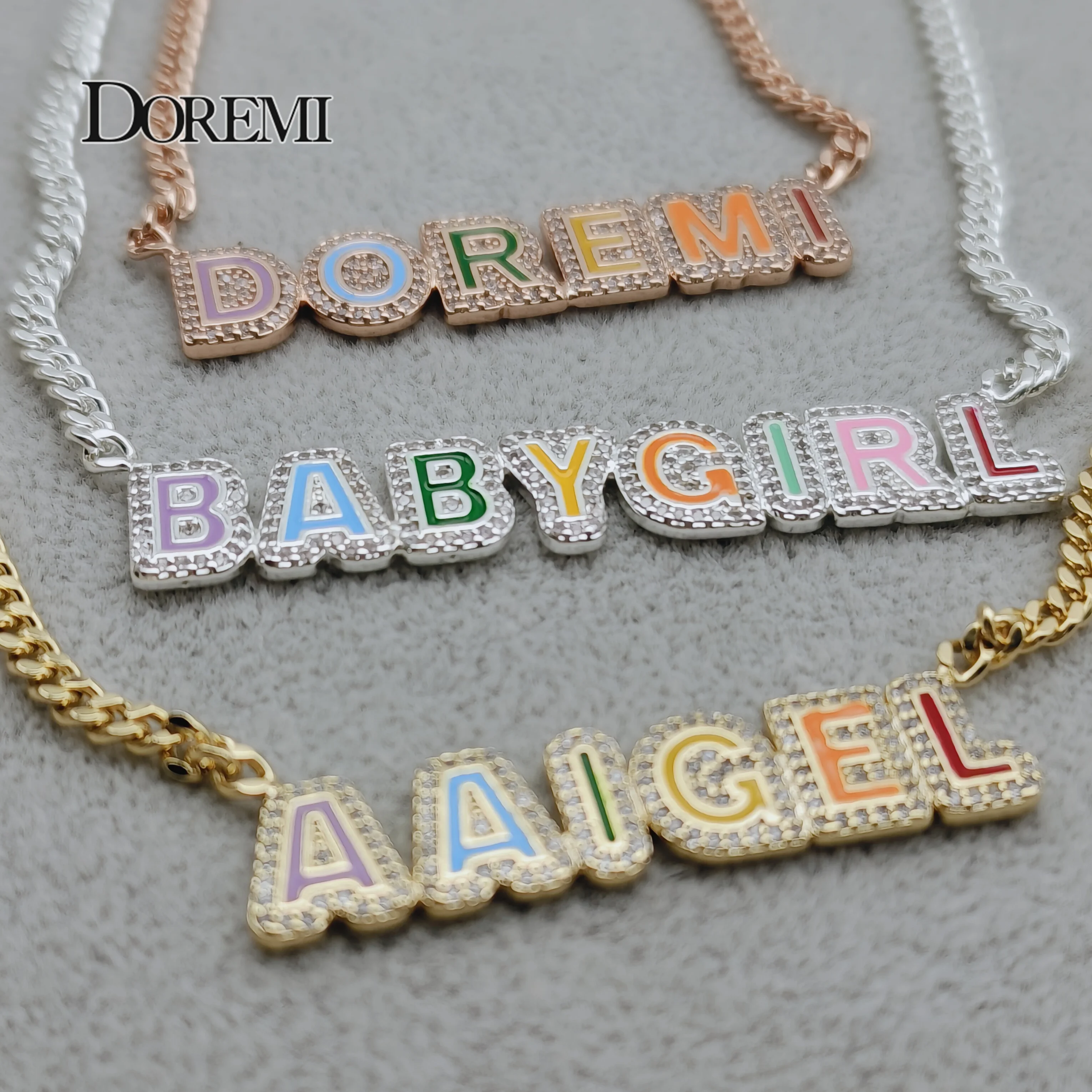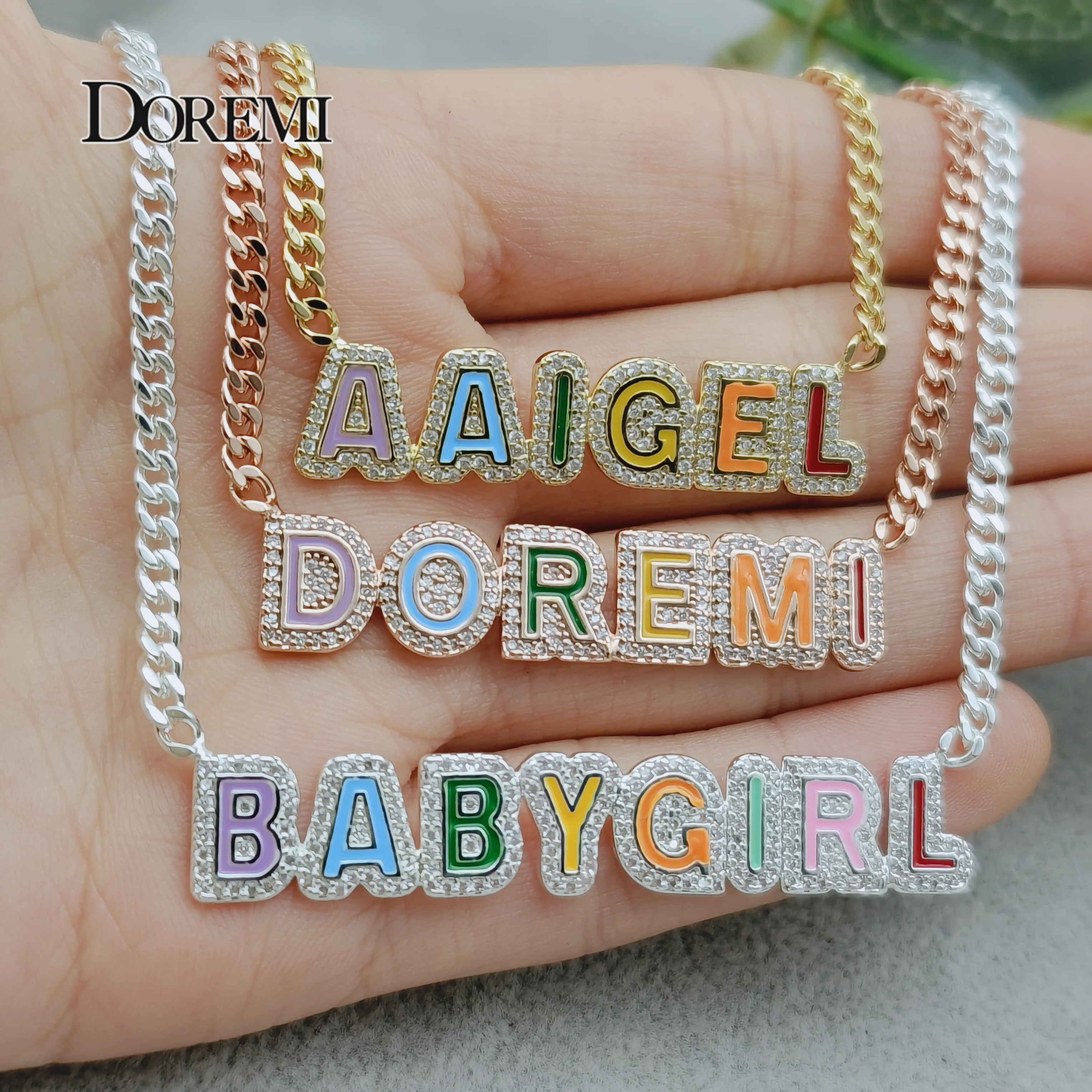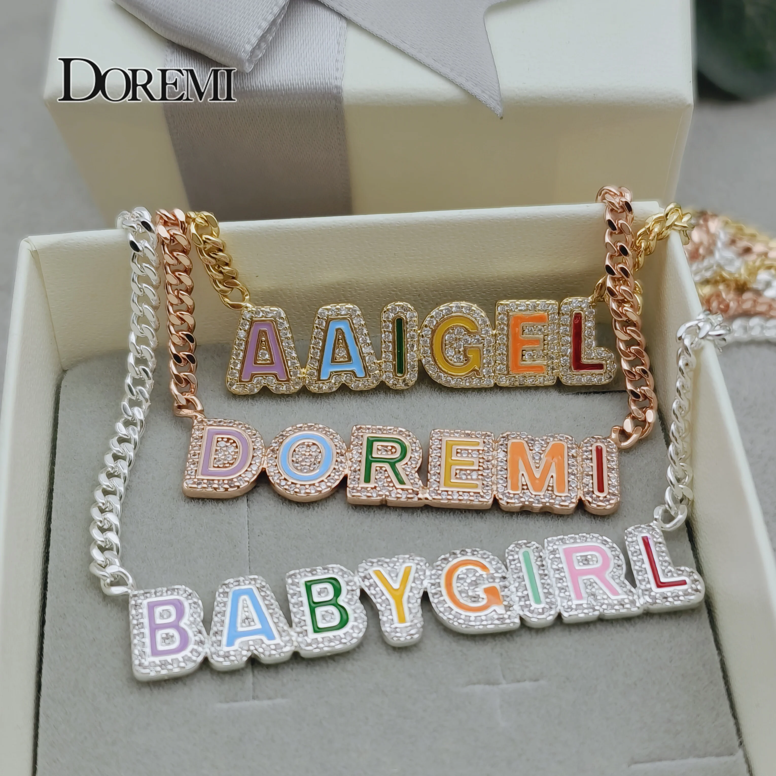 Кубинская цепочка DOREMI, эмалированное ожерелье с именем, персонализированное ожерелье с надписью на заказ, красочный хрустальный кулон, рождественский подарок
