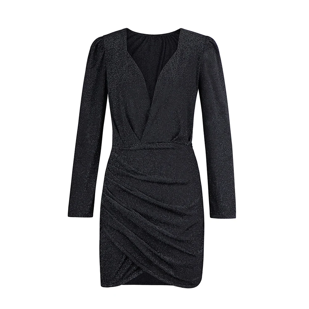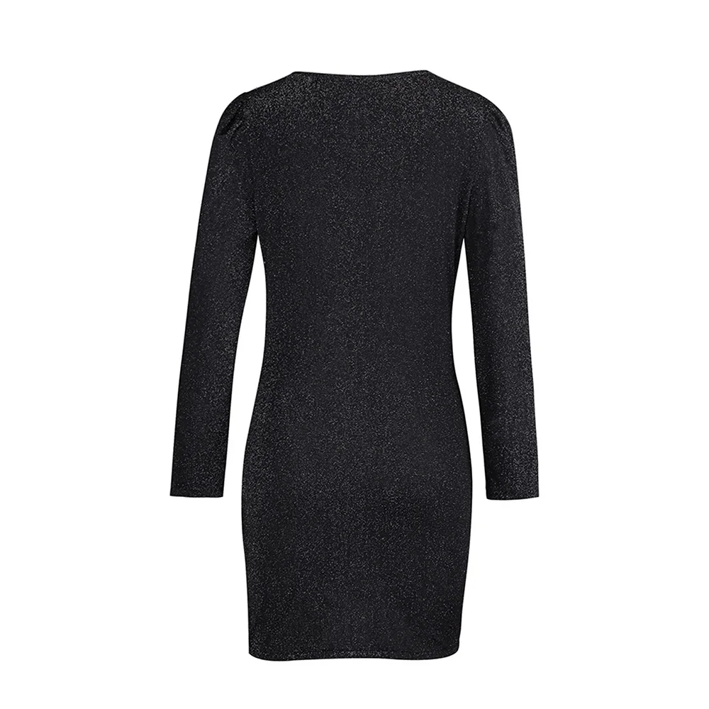 Сексуальное женское блестящее облегающее мини-платье с глубоким V-о...