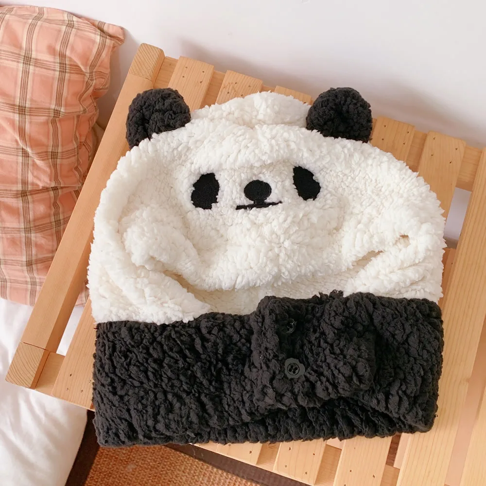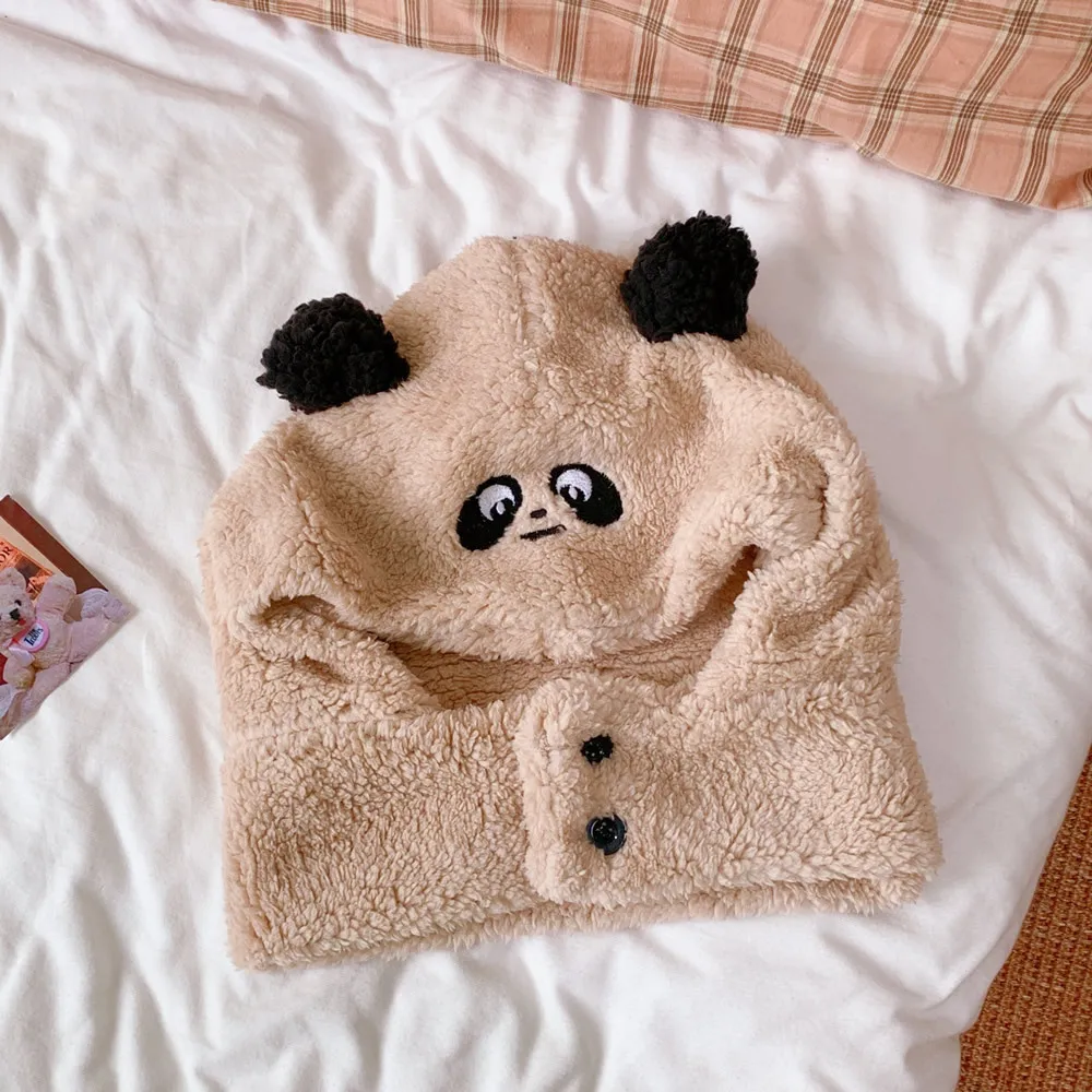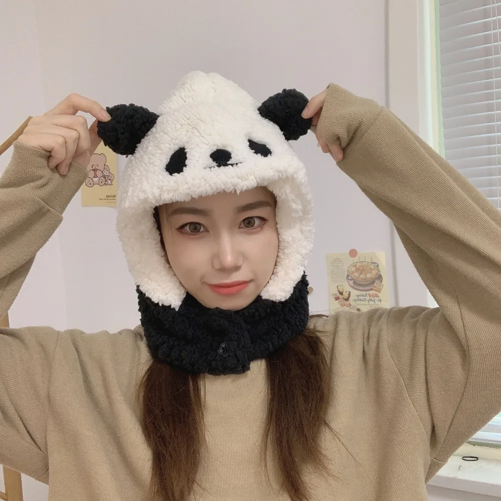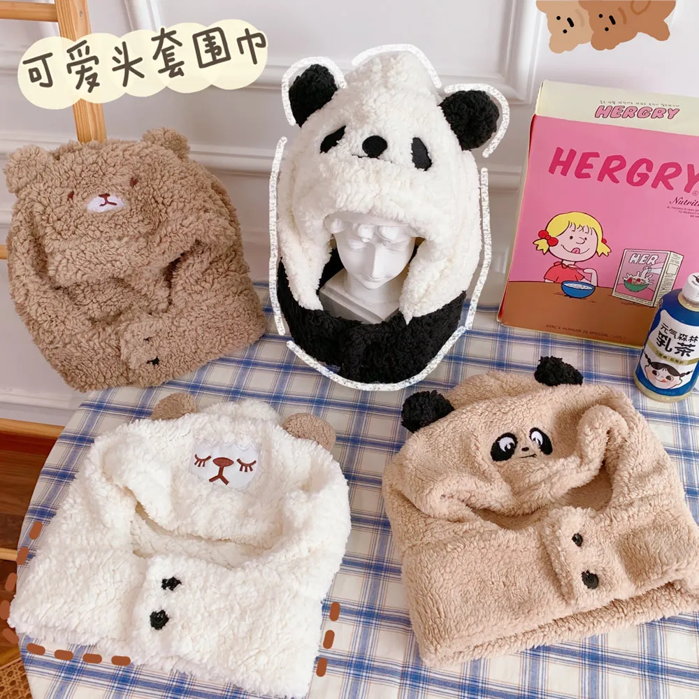 Милый мультяшный медведь, ягненок, плюш, теплые однотонные шапки в виде панды, шарф, набор, маска, зимний теплый защитный ушной головной убор для женщин, подарок для девочки