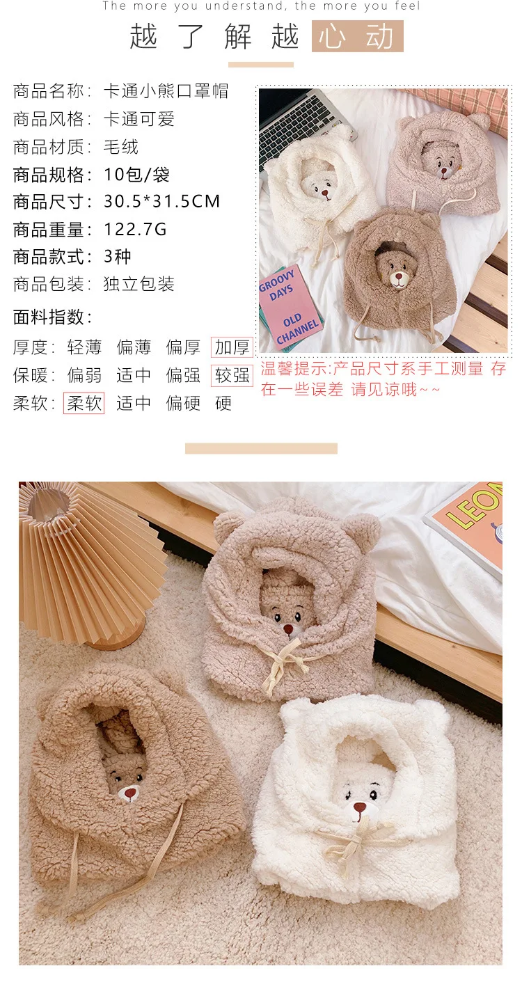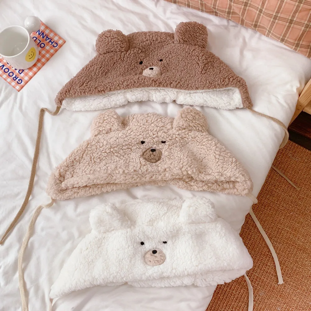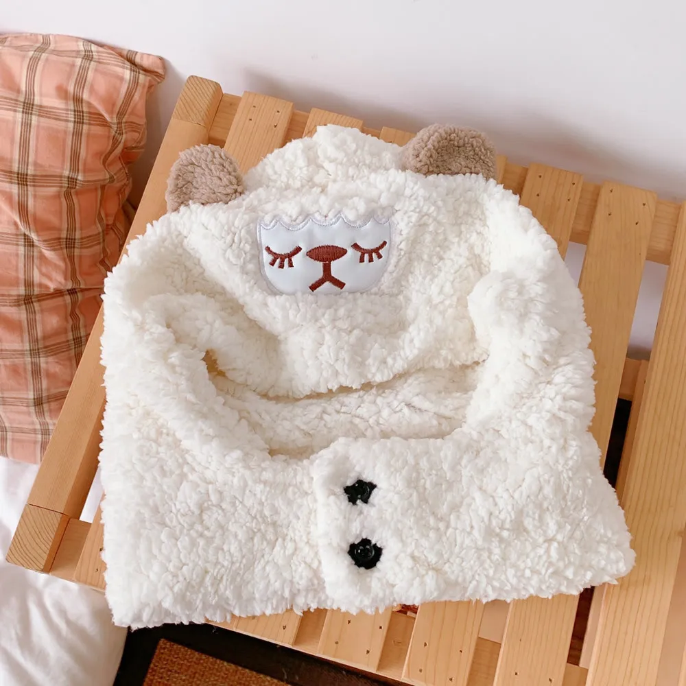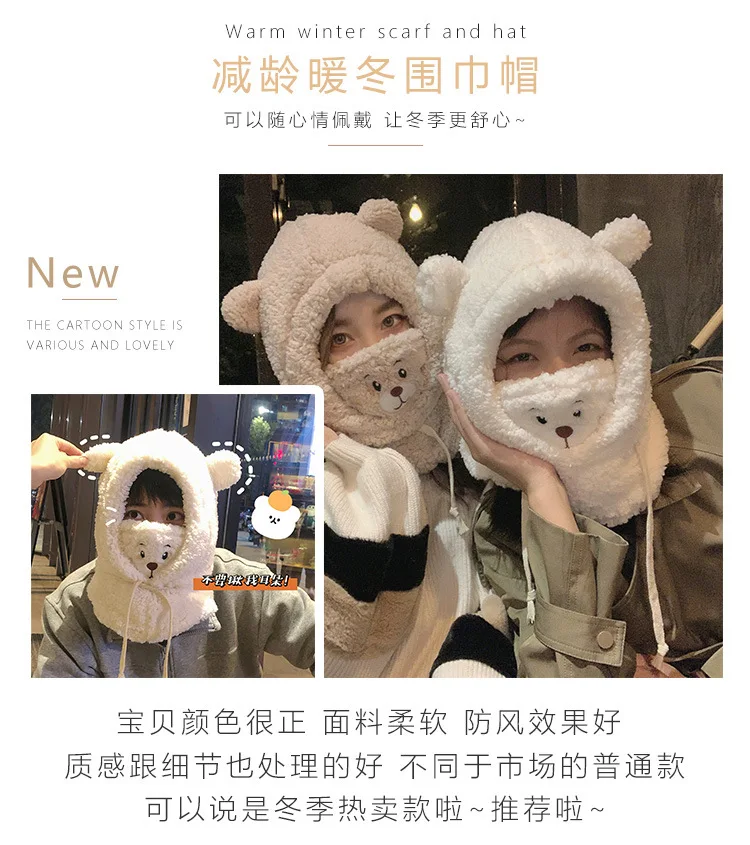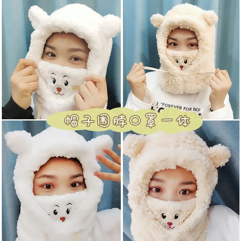 Милый мультяшный медведь овечья плюшевая теплая однотонная фотошарф набор маска зимняя холодная утолщенная Защитная шапка для ушей для женщин подарок для девушек
