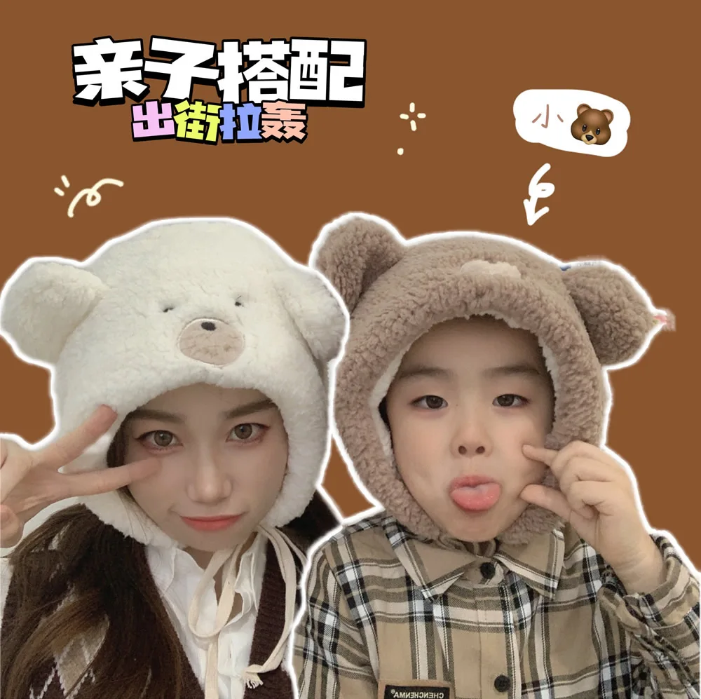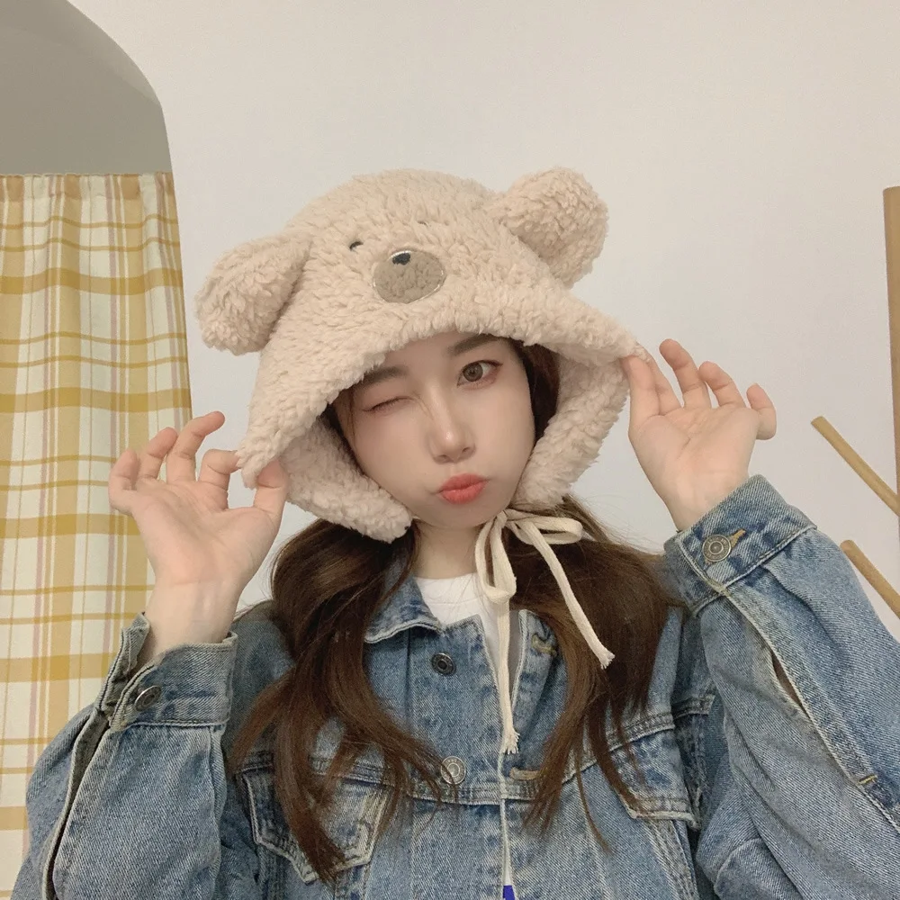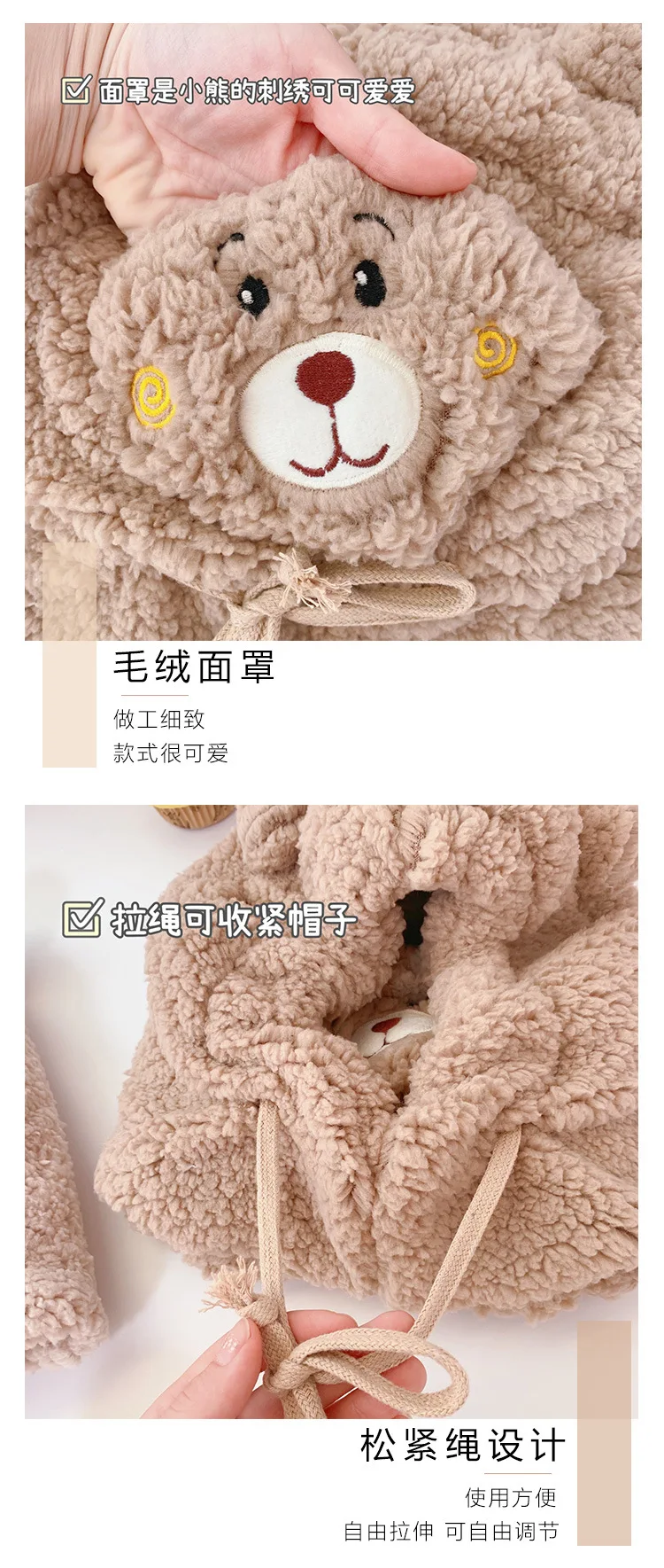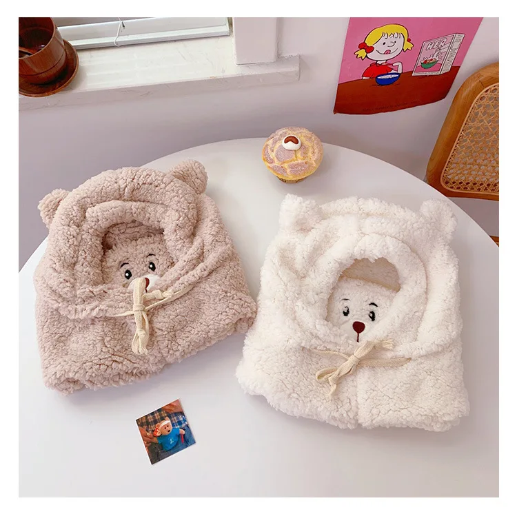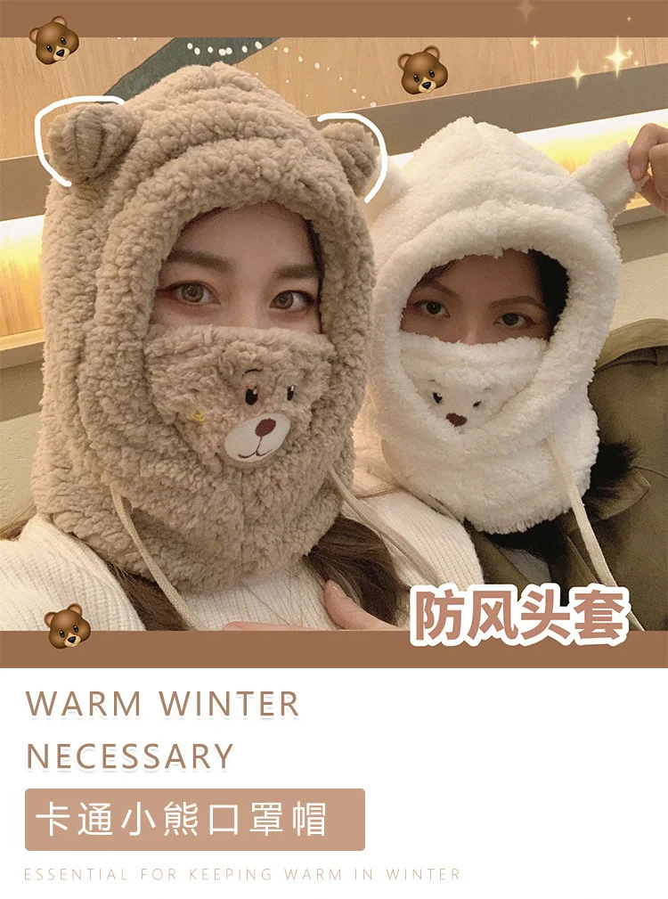 Милый мультяшный медведь овечья плюшевая теплая однотонная фотошарф набор маска зимняя холодная утолщенная Защитная шапка для ушей для женщин подарок для девушек