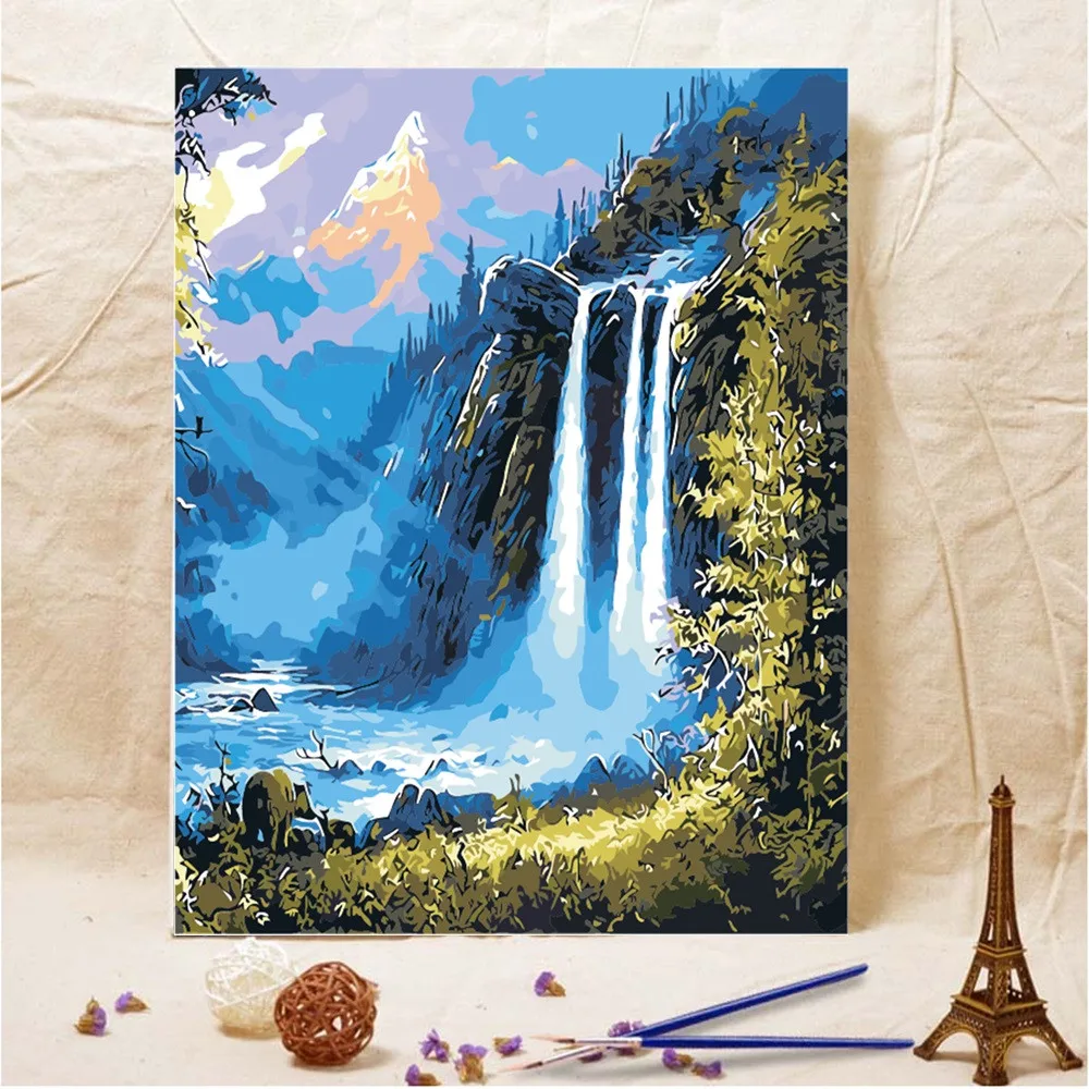 Картина маслом по номерам горы, водопад, набор для рисования на хол...