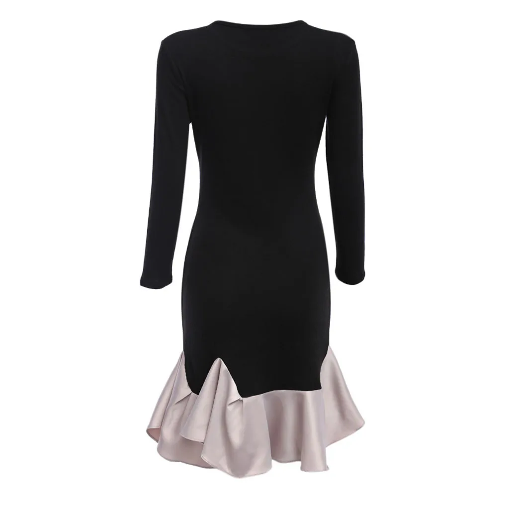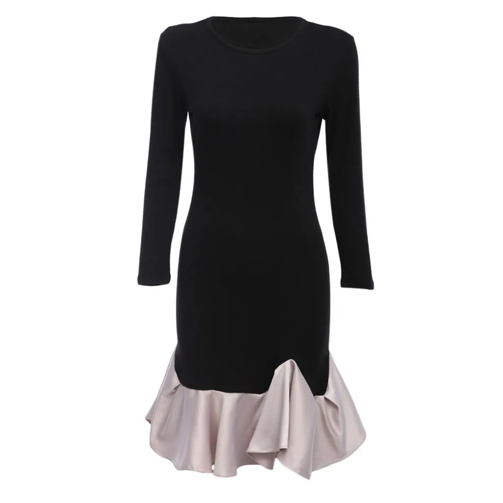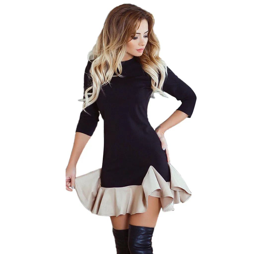 Новое Женское мини-платье, осеннее платье с длинным рукавом, круглым вырезом и прострочкой, оборками, модное женское сексуальное облегающее вечернее Клубное платье, Mujer # T2G