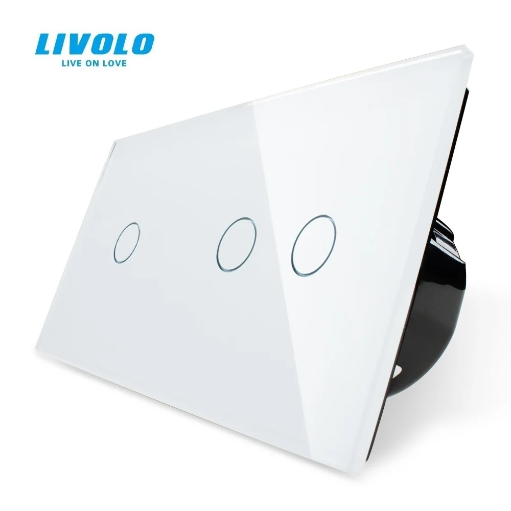 Производитель, Livolo стандарт ЕС, сенсорный выключатель, белая кристаллическая стеклянная панель, настсветильник смарт-выключатель света, фотосессия для умного дома