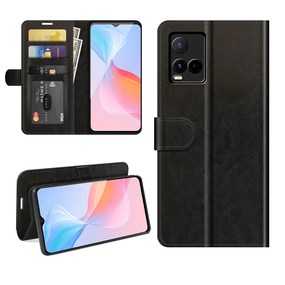 Чехол для Vivo Y21 4G (6,5 дюйма), чехол-бумажник для карт, чехол-книжка из искусственной кожи, черный