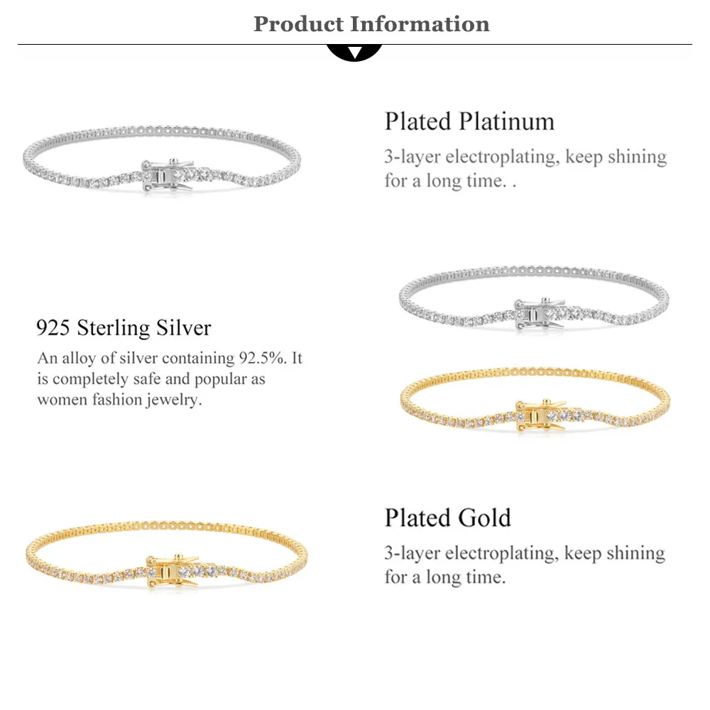 Браслет ANDYWEN из стерлингового серебра 925 пробы с круглым кубическим цирконием, 2 мм