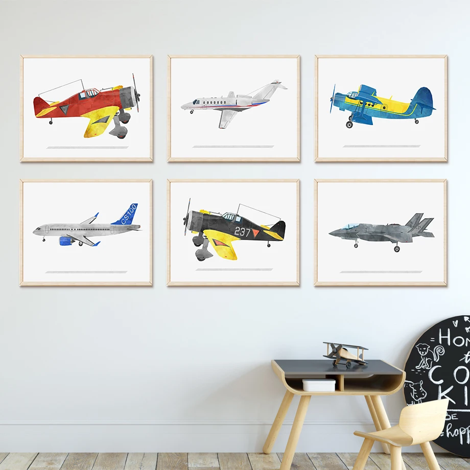 Самолет Авиатор истребитель настенная Картина на холсте скандинавские постеры и принты настенные картины для детской комнаты декор