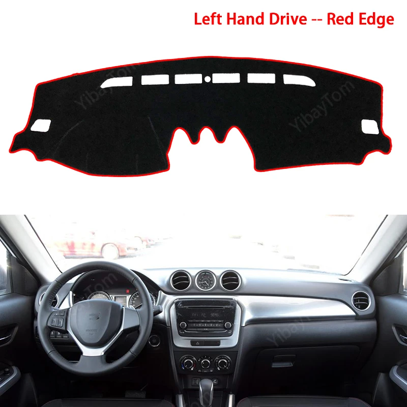 Введение : Тип товара: нескользящий коврик Бренд: YibayTom Приспособление:Для Suzuki Vitara LY 2015-2019 Подходит: подходит для моделей левого привода и подходит для моделей правого привода Композиции: 1 шт. крышка приборной панели + комплектующие Размер: подходит для текущей модели (как на фото) Цвет: четыре типа Черный с черной отделкой Черный с красной отделкой Черный с синей отделкой Черный с коричневой отделкой Ключевые особенности: 1. Экологически чистые материалы, отсутствие неприятных запахов, противоскользящие, легкая установка.2. Чехлы защищают приборную панель от трещин, обесцвечивания и бликов.3. Чехлы изготовлены из прочного, красочного, не сужающегося ковра.4. Зимой, минимальная разница температур, защита приборной панели от холода.5. Летом Охлаждает температуру транспортного средства, блокируя УФ-лучи от нагревания прибора.6. Крышка приборной панели STPLRGECP полностью защищает панель приборной панели в отличном состоянии. Крышка приборной панели Обратите внимание: 1. Различные автомобильные коврики для различных приборов, пожалуйста, проверьте модель вашего автомобиля, лет, чтобы убедиться, что коврик правильно подходит вашему автомобилю.2. Это не универсальный продукт. Пожалуйста, убедитесь, что приборная панель вашего автомобиля такая же, как на фото, если нет, пожалуйста, не заказывайте и не подключайте нас.3. Если у вас возникнут какие-либо проблемы с ковриком, пожалуйста, не стесняйтесь связаться с нами или сообщить нам свою модель автомобиля, лет, подтвердит это для вас.