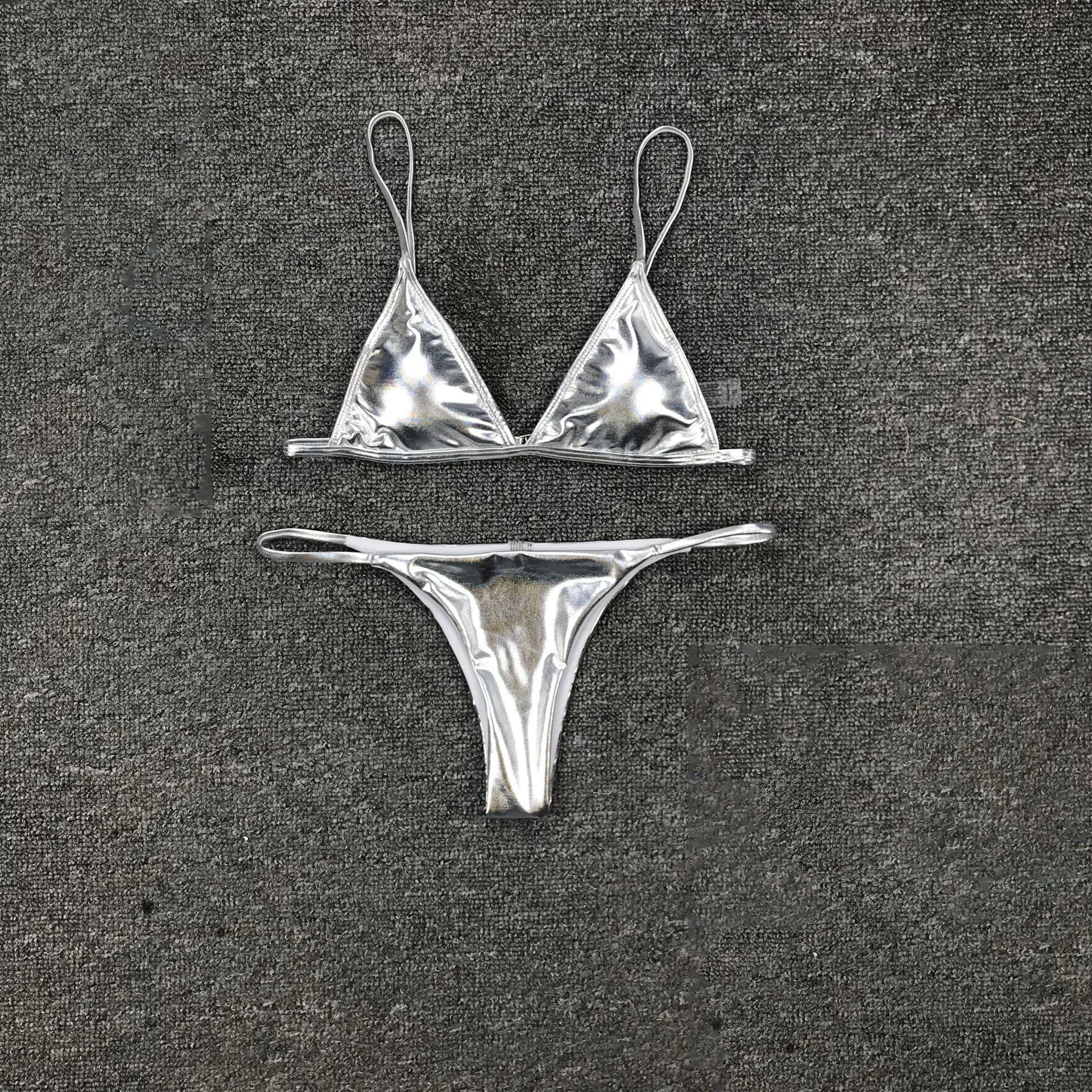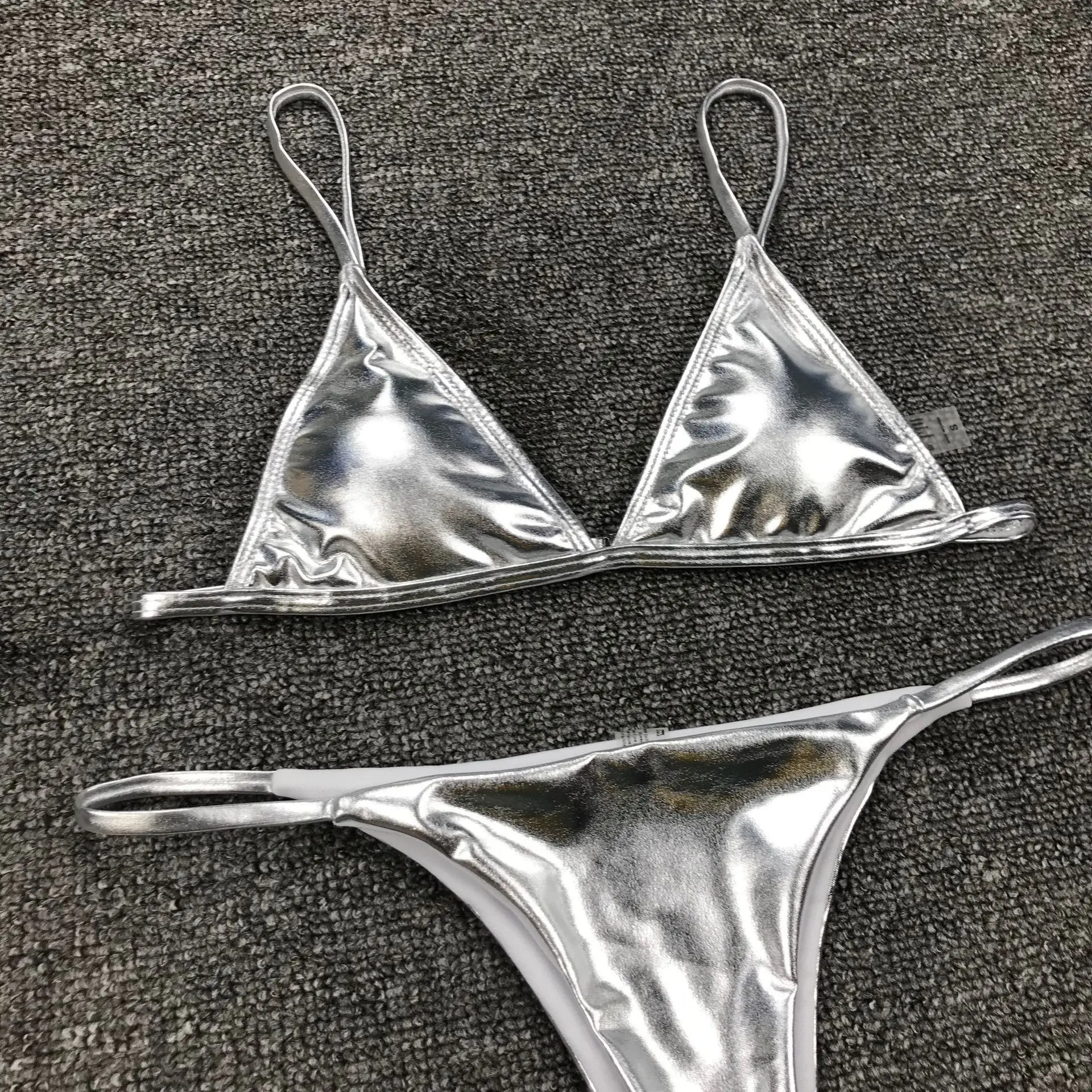 Соблазнительный женский золотистый комплект бикини 2021, горячий летний купальник с бюстгальтером с низкой талией, Модный Блестящий женский купальный костюм, пляжная одежда