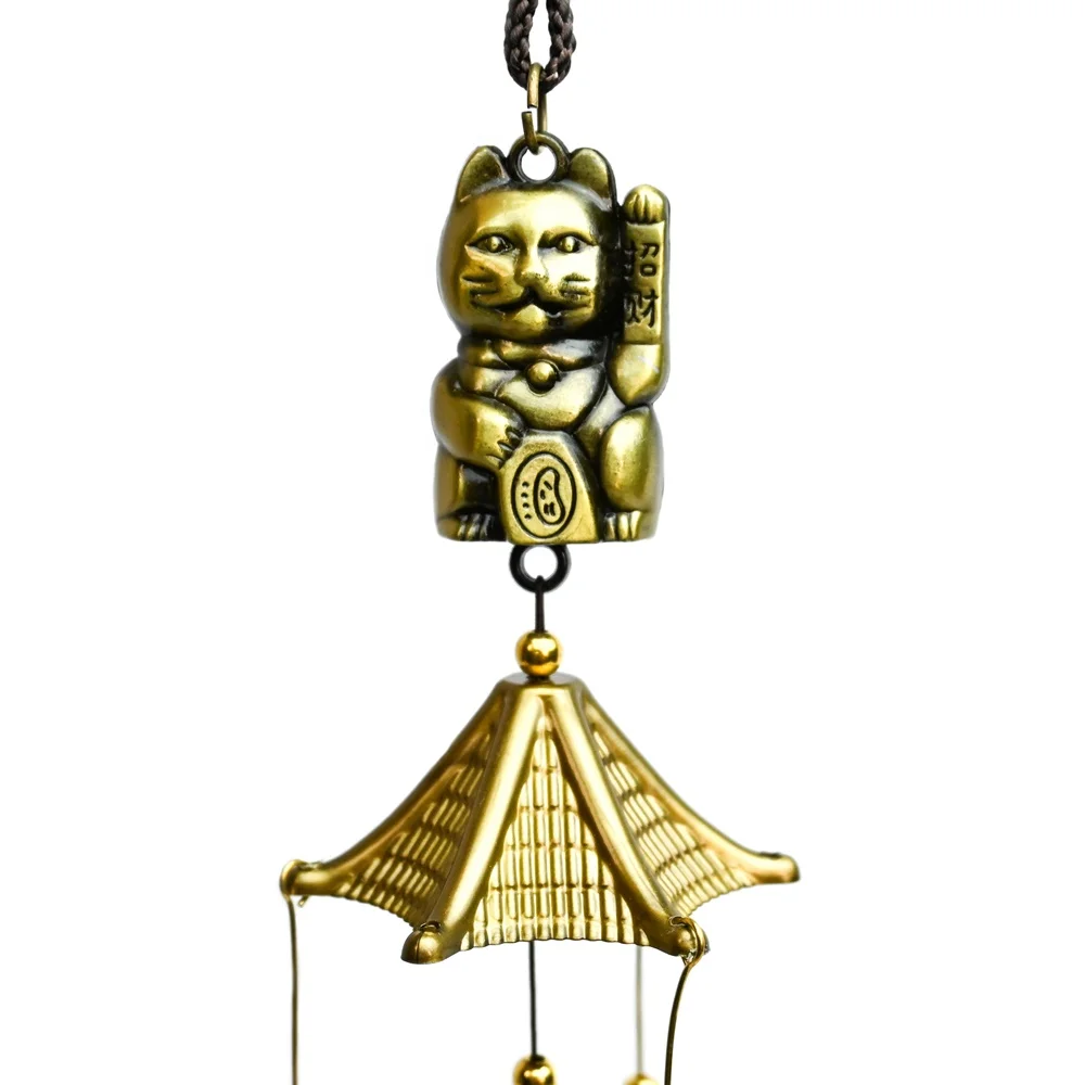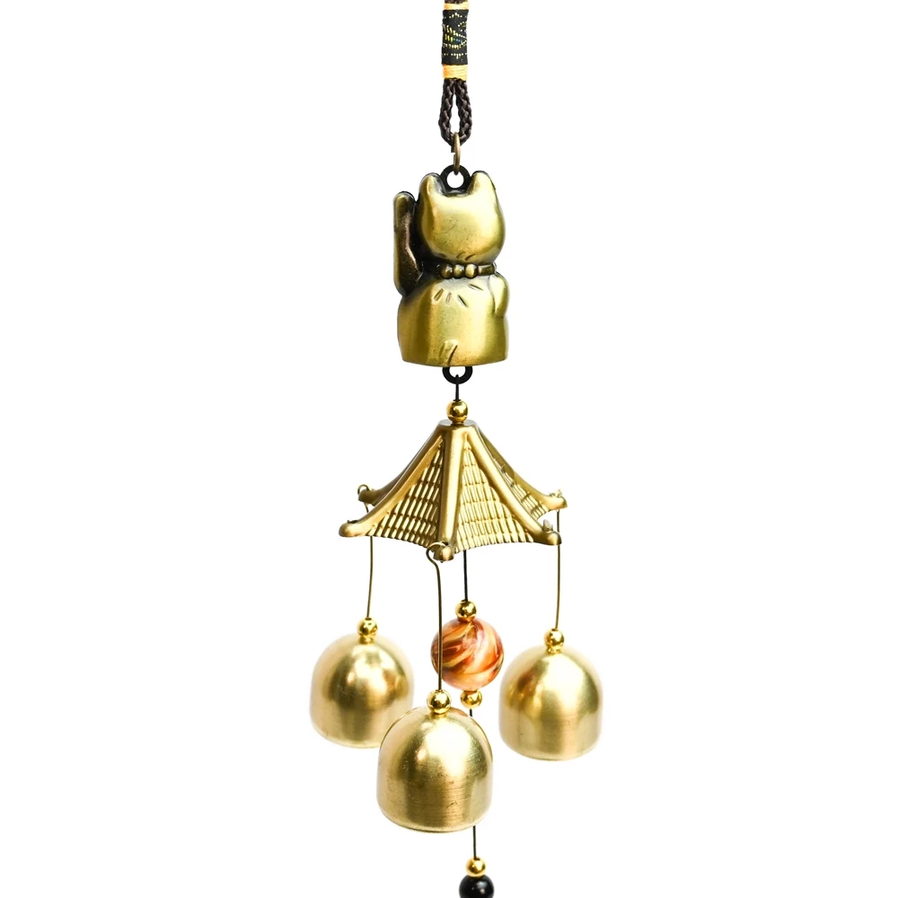 В практике фен-шуй считается, что музыка ветра защищает дом от негативной энергии. Чистит пространство звуком. Музыку ветра можно повесить над дверным проёмом или аркой. Данный вариант состоит из 3х медных колокольчиков и кошкой монеки с поднятой лапой.