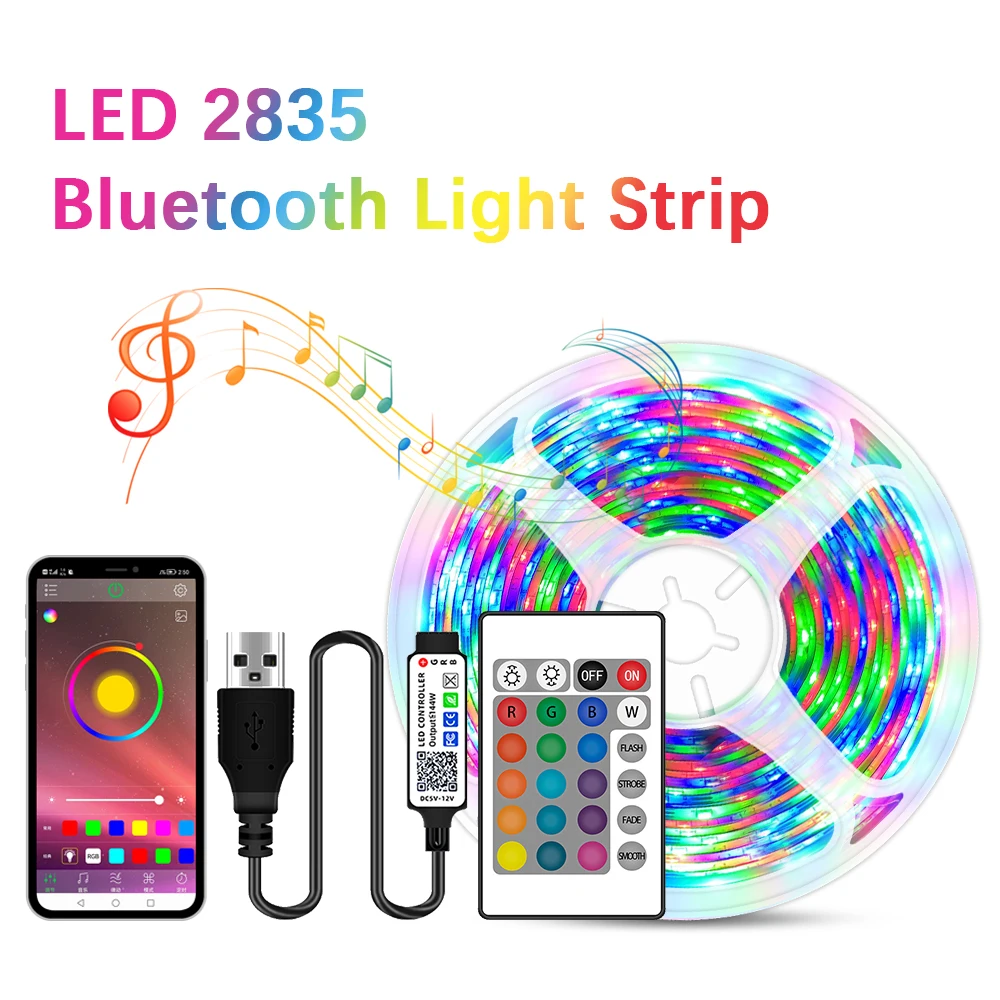 Светодиодсветильник лента RGB с Bluetooth для украшения комнаты, led лампа для свадебной спальни, кухни, телевизора, лампа