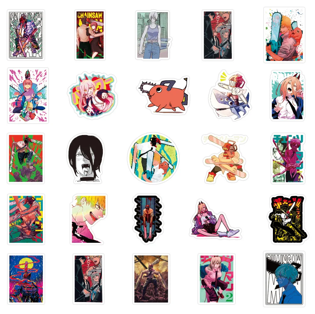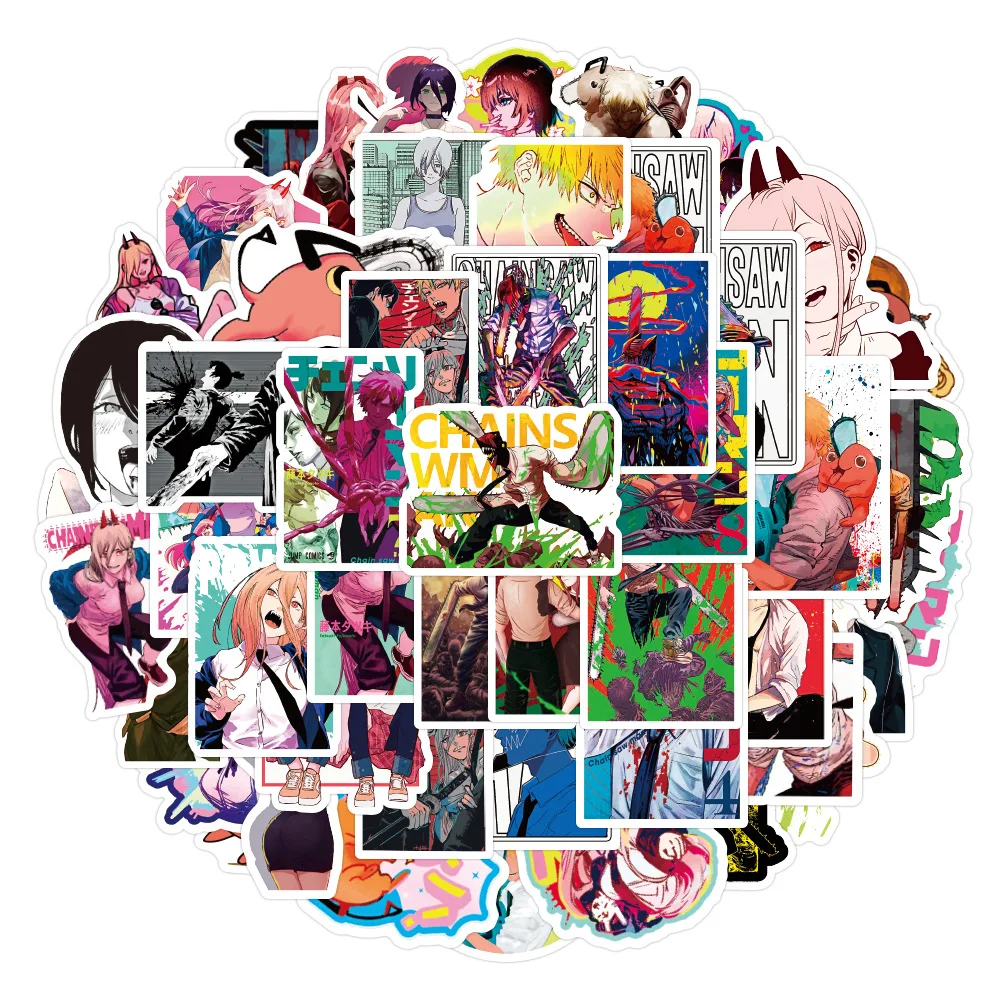 10 30 50 шт., водонепроницаемые Мультяшные Стикеры с изображением цепной пилы
