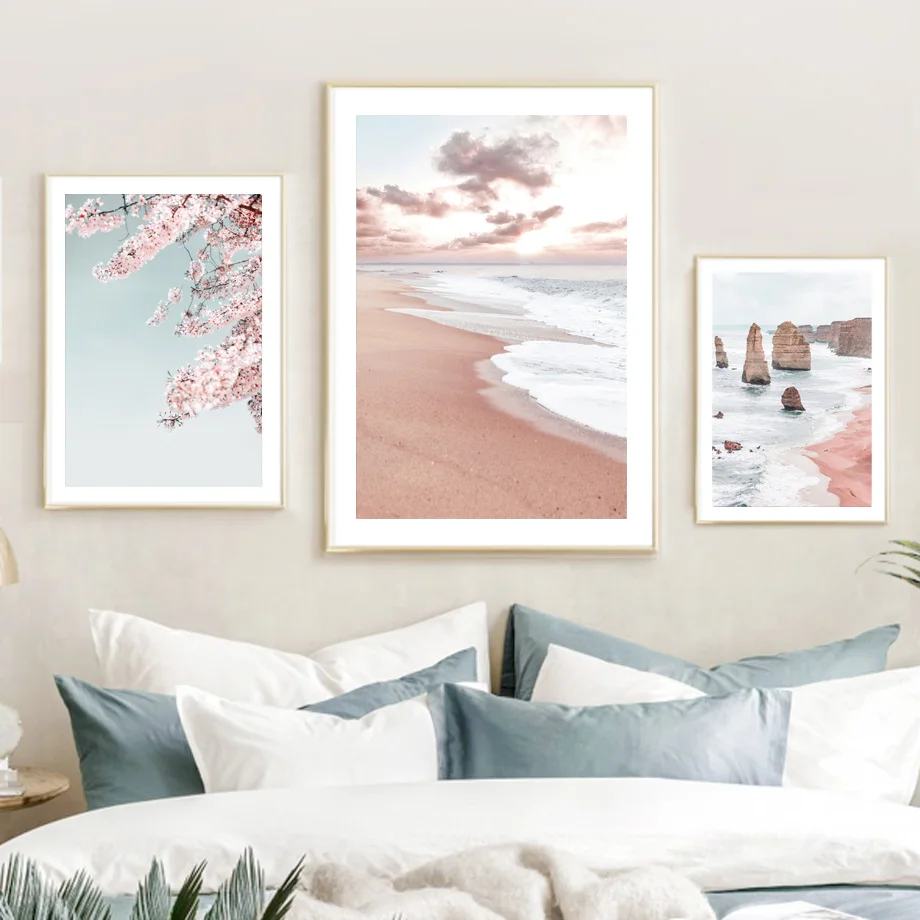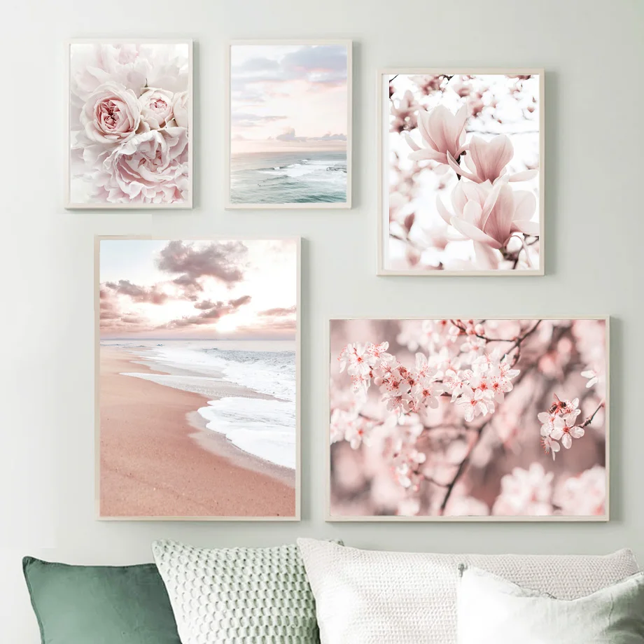Настенные постеры в скандинавском стиле с изображением розовых лепе...