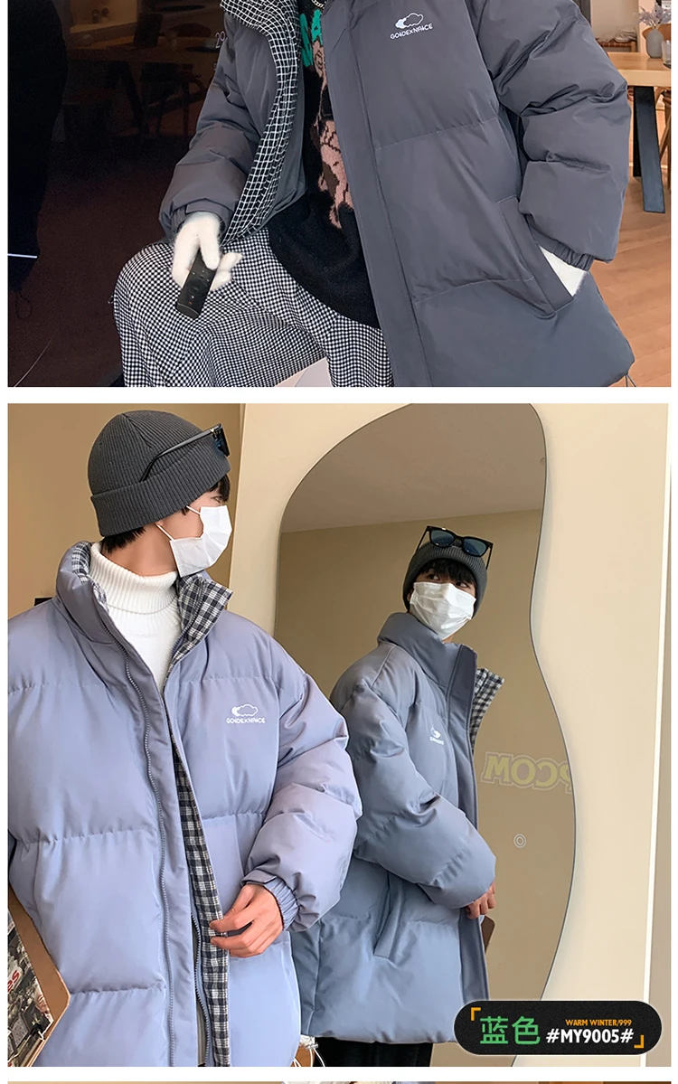 Мужская теплая куртка-пуховик с воротником-стойкой, в стиле Харадзюку