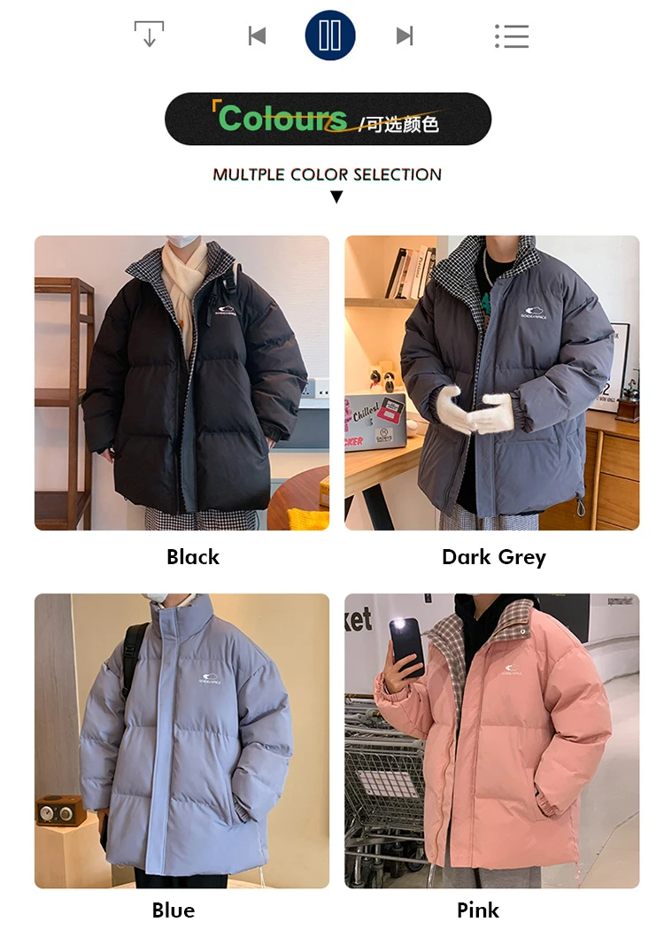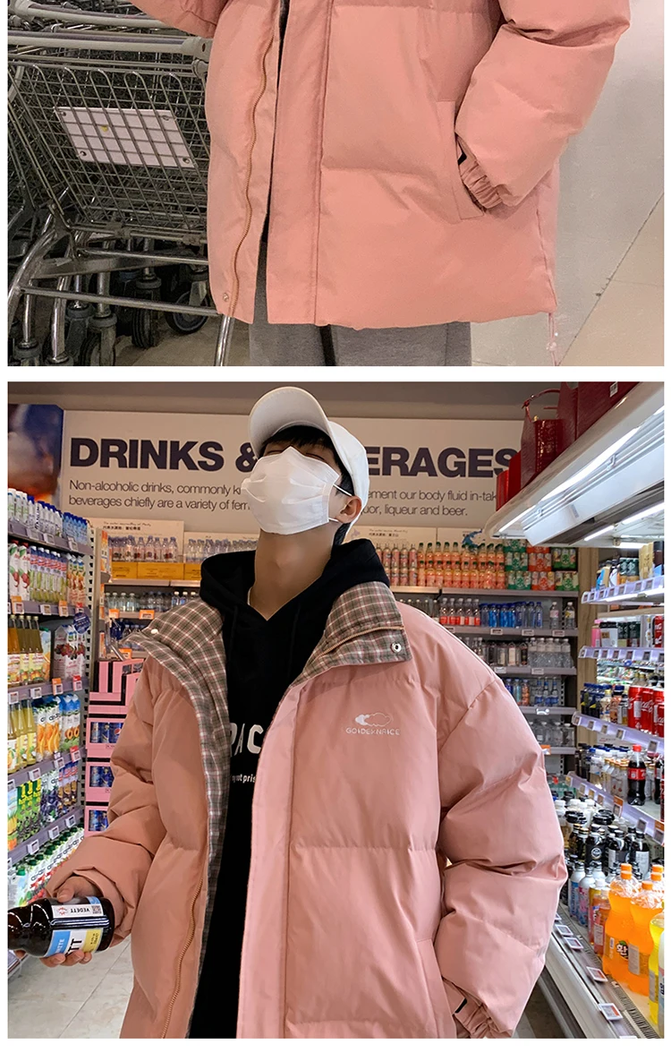 Харадзюку пуховик Мужская Зимняя мода хип-хоп стоячий воротник негабаритная теплая верхняя одежда клетчатая цветная утепленная парка пальто