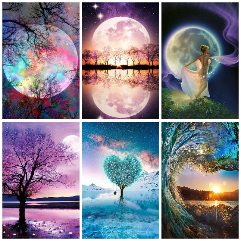 Алмазная живопись 5D, луна, фотосессия, полная луна, пейзаж, алмазн...