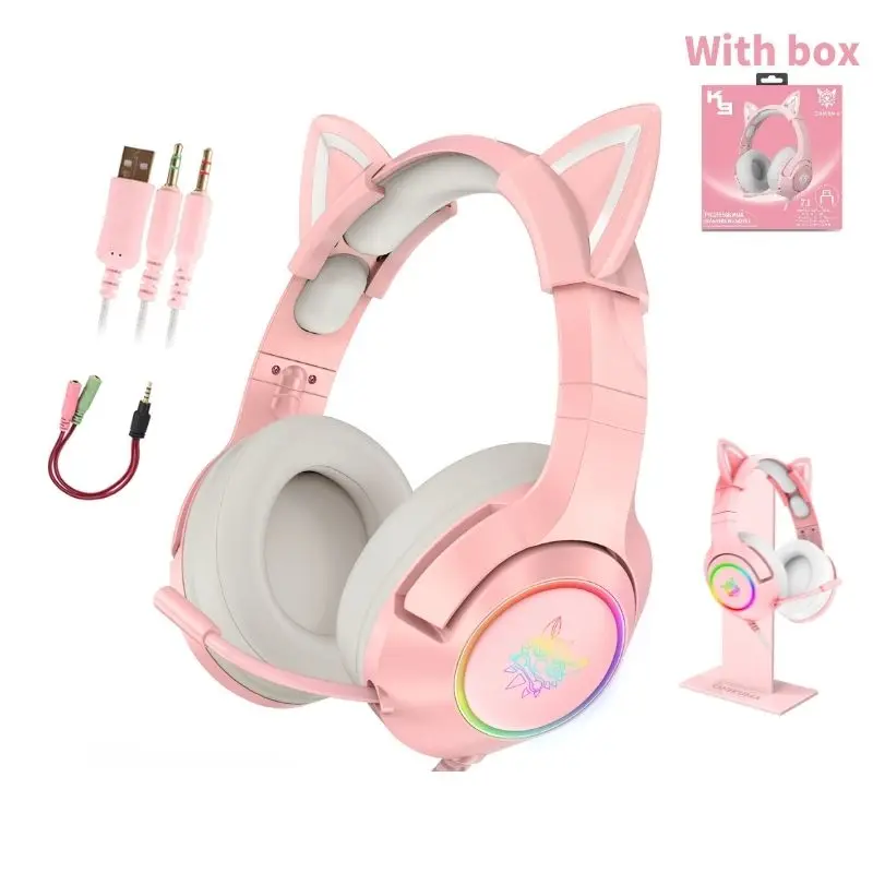 Наушники Onikuma K9 с кошачьими ушками для девочек, игровая гарнитура с микрофоном, 7,1 окружающий звук для PS4 XBox One Games PS5 casque