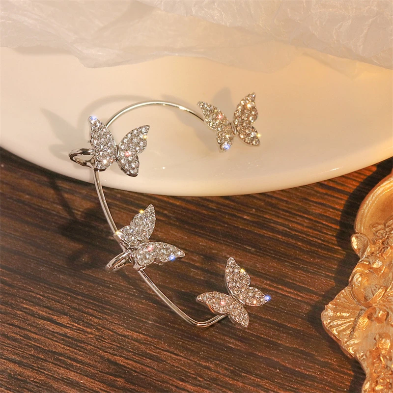 Новые блестящие циркониевые Клипсы-бабочки для ушей для женщин и девушек, модные серьги-каффы для ушей без пирсинга, крючки для ушей, ювелирные изделия для вечеринки и свадьбы, подарок