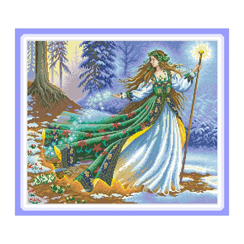 Зимний лес эльф пустые Наборы для вышивания на холсте Белая Ткань Наборы для вышивания рукоделия 11CT 14CT DIY домашние забавные украшения картины