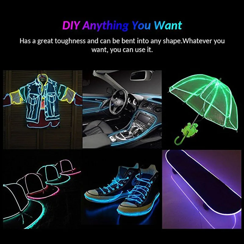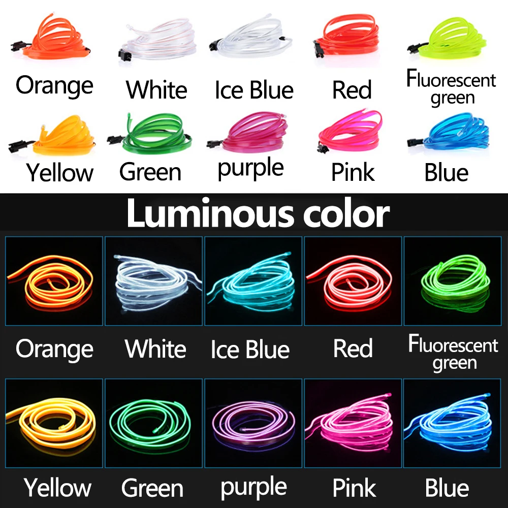 Неоновые светодиодные ленты 1 м2 м3 м5 м для освещения салона автомобиля, автомобильная светодиодная лента, гирлянда, электропровод, декоративная лампа для автомобиля, гибкая трубка
