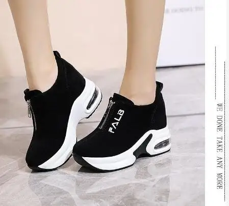 Женские кроссовки на платформе, черные кроссовки на танкетке, повседневная обувь, 2021