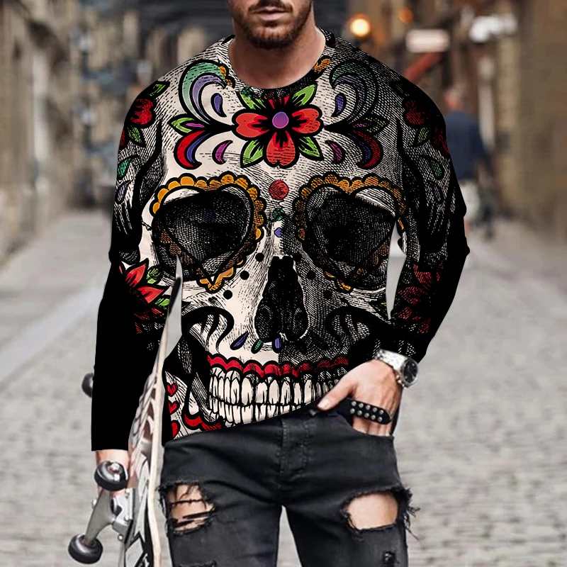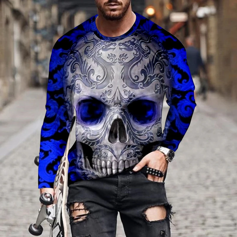 Европейская и американская популярная мужская Спортивная футболка для отдыха с 3D Цифровым принтом уличная трендовая футболка с 3D принтом и длинным рукавом