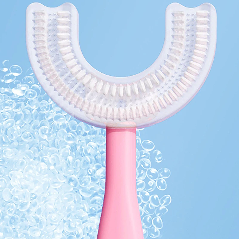 Симпатичные маленьких детей в возрасте от 2 до 12 лет U-shape форме, благодаря чему создается ощущение невесомости с Зубная щётка 360 градусов U Детские Силиконовые Зубная щётка для чистки массаж Зубная щётка моделирование Зубная щётка Oral