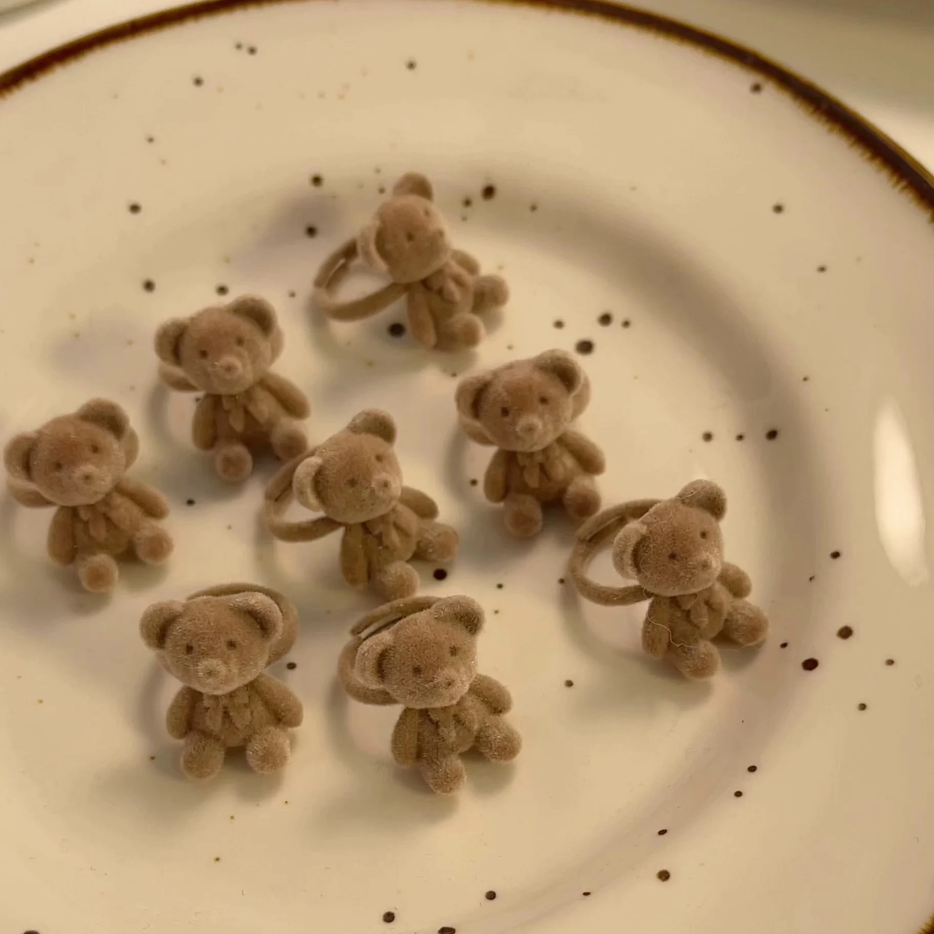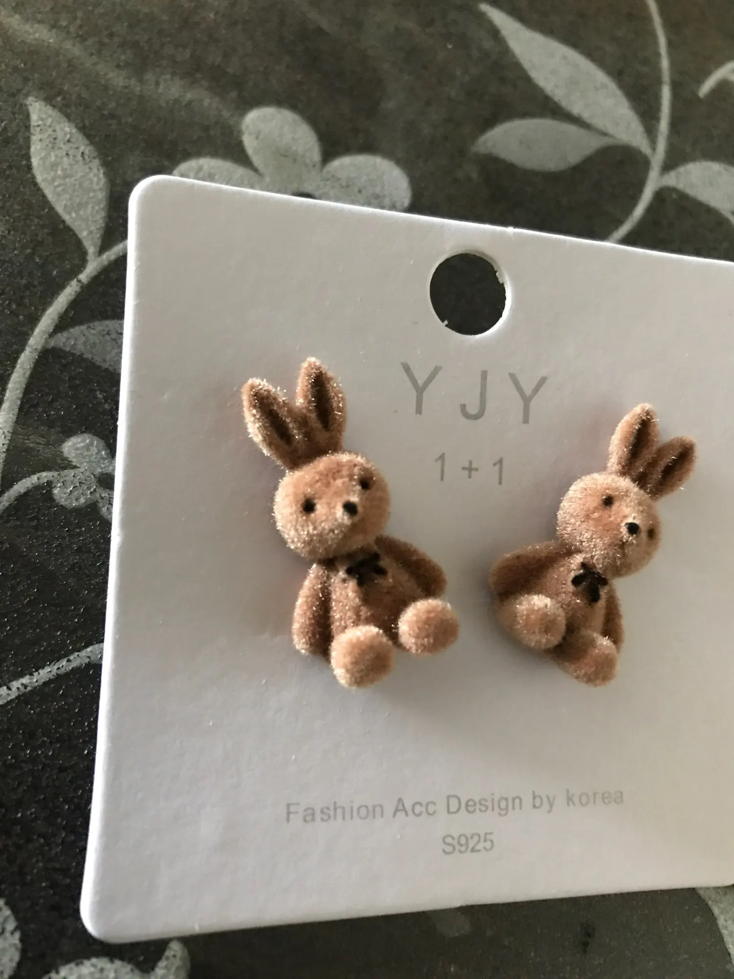 Флокирующий плюшевый кролик, фотография, кавайные, коричневые, хаки, кольца с животными, серьги для женщин и девушек, ожерелье