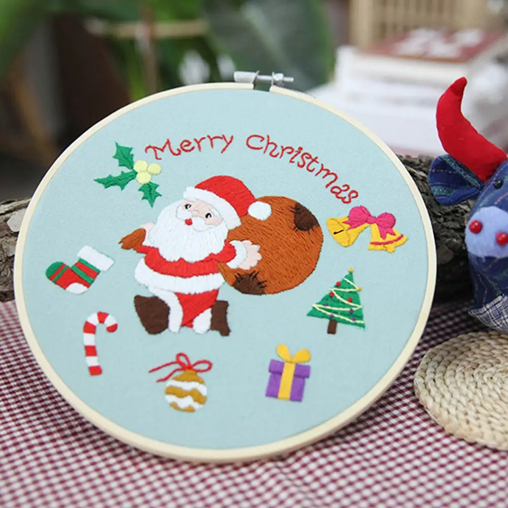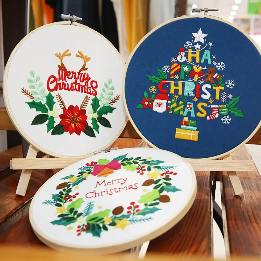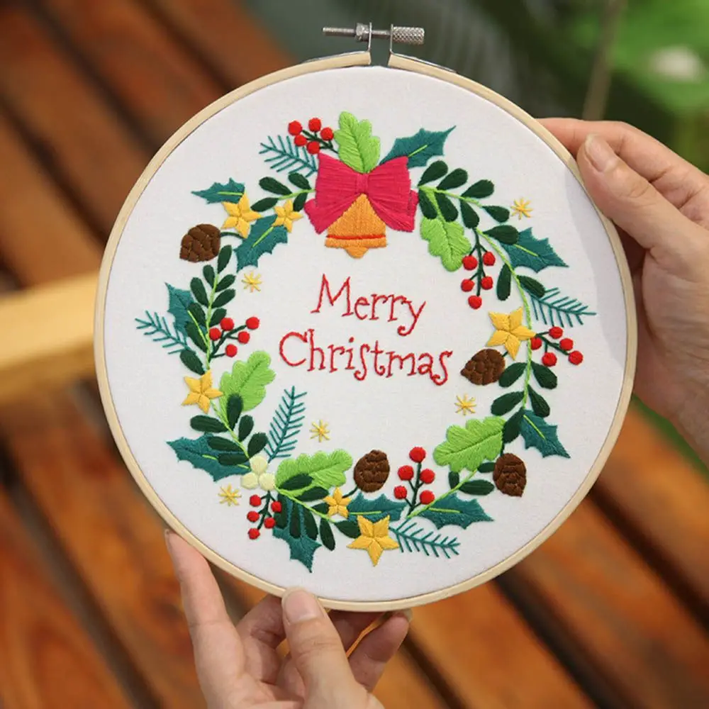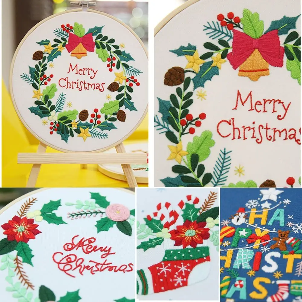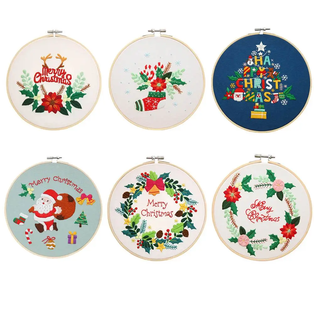 Рождественская вышивка сделай сам, стартовый комплект, обруч для вышивки с цветочным узором, хлопковая льняная ткань, нить для рукоделия, рукоделие, рукоделие