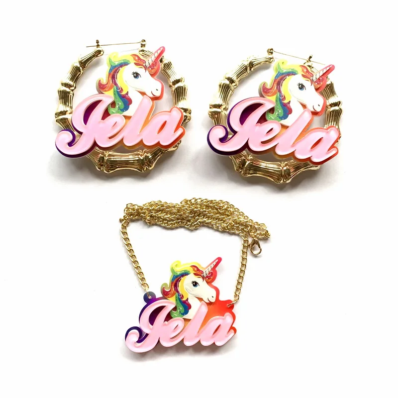 Персонализированные буквы имя слова с фото персонажа акриловая искусственная кожа и ожерелье модный набор ювелирных изделий