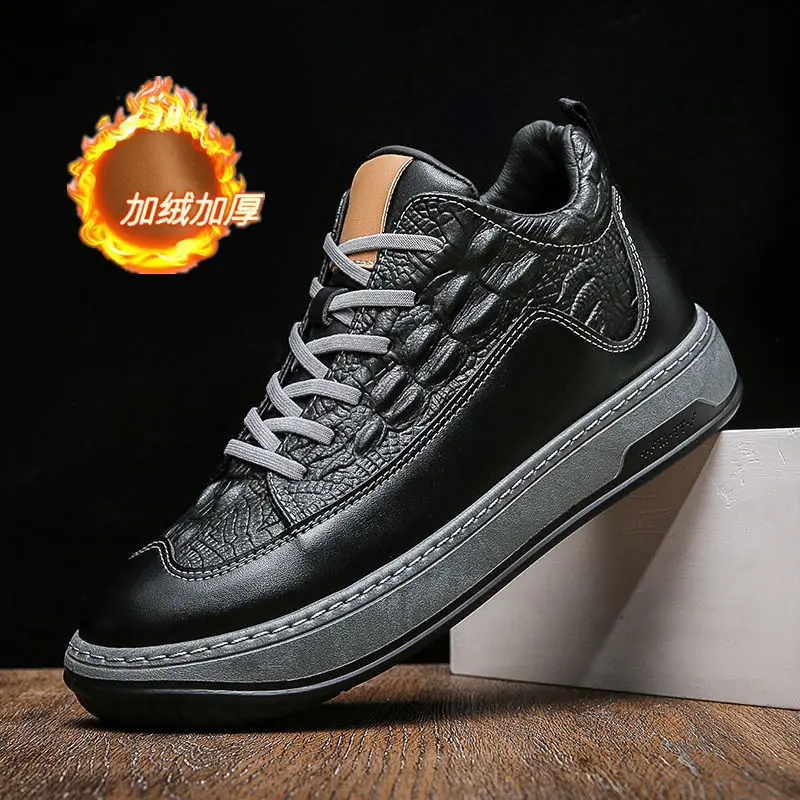 Новинка Весна 2022, мужская спортивная обувь, износостойкая нескользящая обувь, теплая обувь с высоким верхом, удобная обувь, модная кожаная обувь