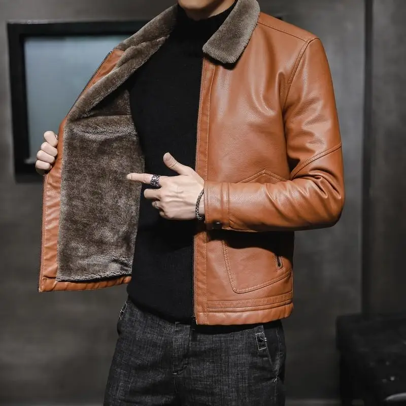 Мужская зимняя куртка из искусственной кожи, Новые лацканы и бархат...