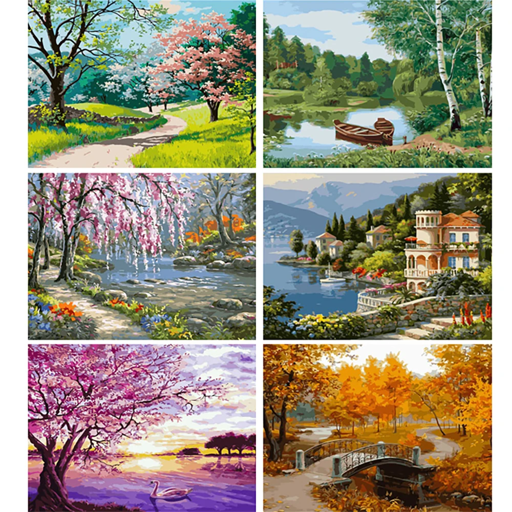 VA-0339 Раскрашивание по номерам цветы цветение пейзаж DIY Раскраши...