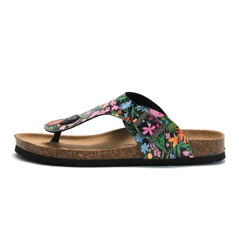 Пробковые тапочки; Женская повседневная обувь на плоской подошве; Женские шлепанцы с цветочным рисунком; Женские мягкие пробковые Вьетнамки с цветочным принтом; Пляжные шлепанцы для отдыха