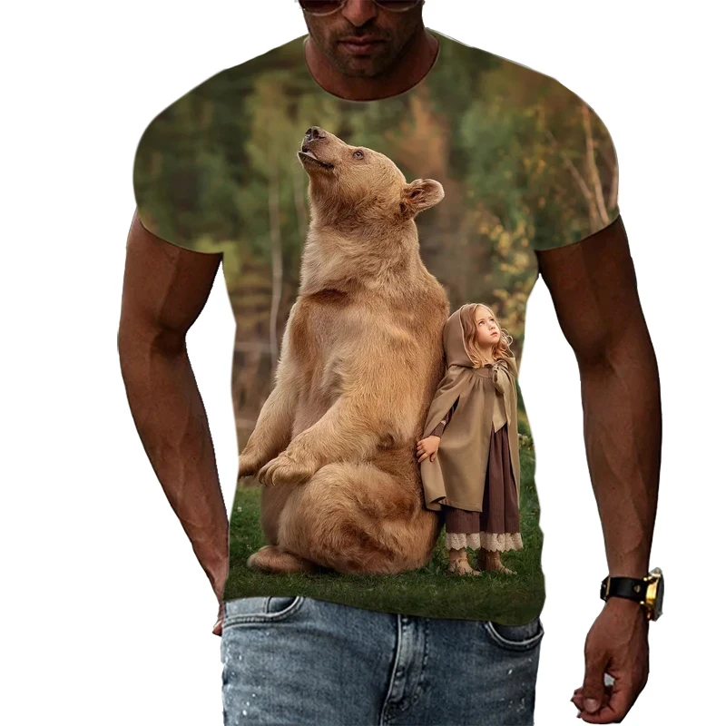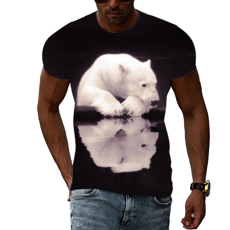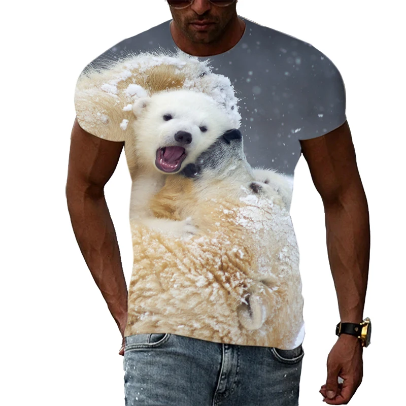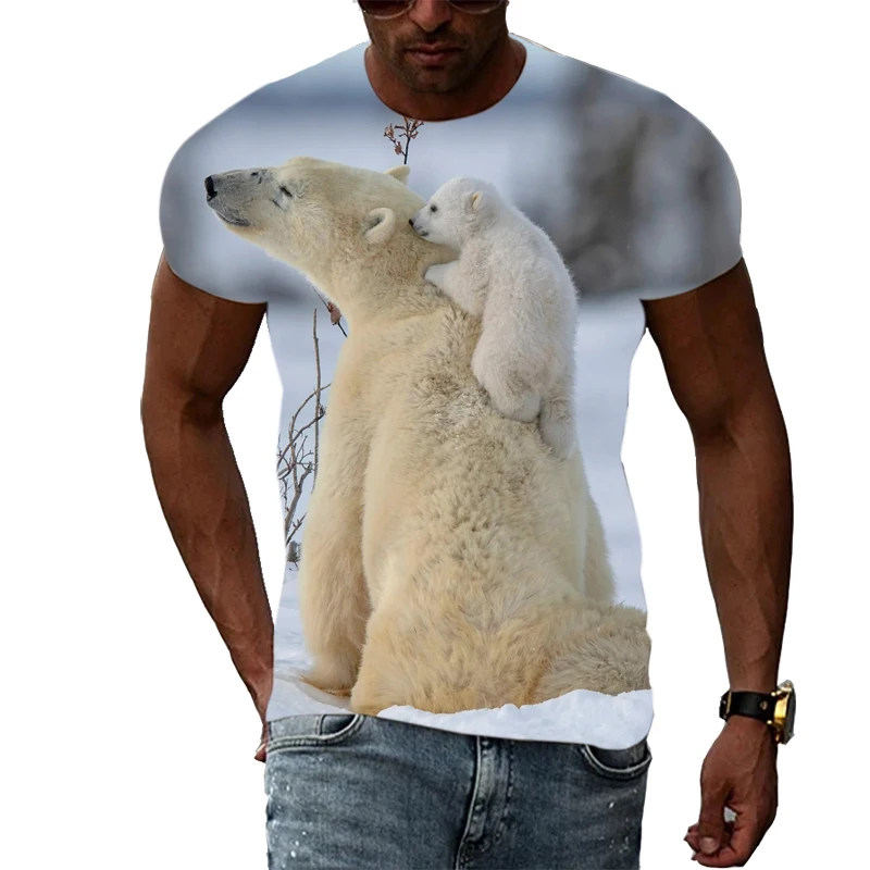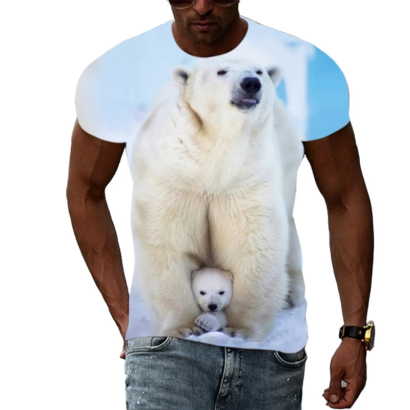 Футболка мужская с 3D-принтом, Модный повседневный уличный Топ оверсайз с коротким рукавом и круглым вырезом, с принтом белого медведя, для родителей и детей, хип-хоп