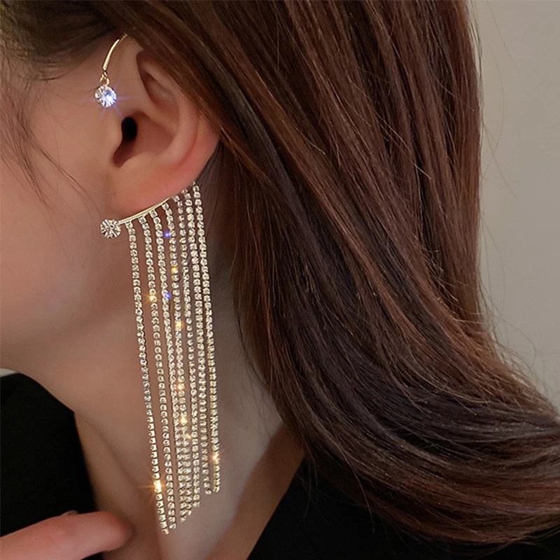Женские серьги-гвоздики со сверкающими кисточками и кристаллами, 1 шт.