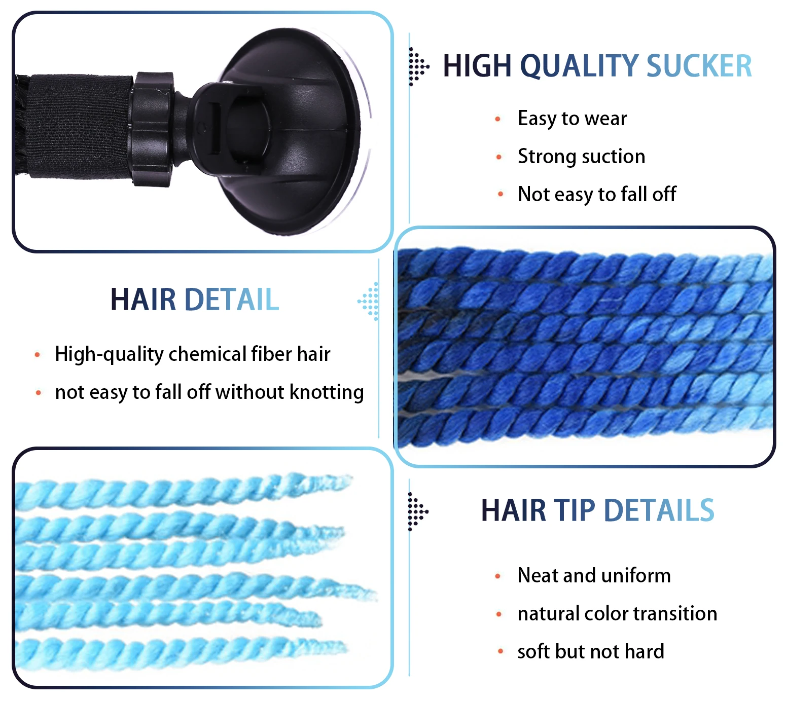 helmet Pigtail Ponytailhelmet braid ponytail with Sucker