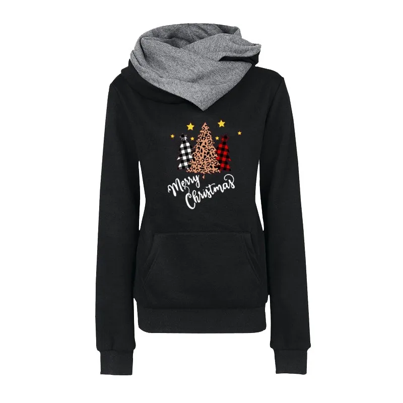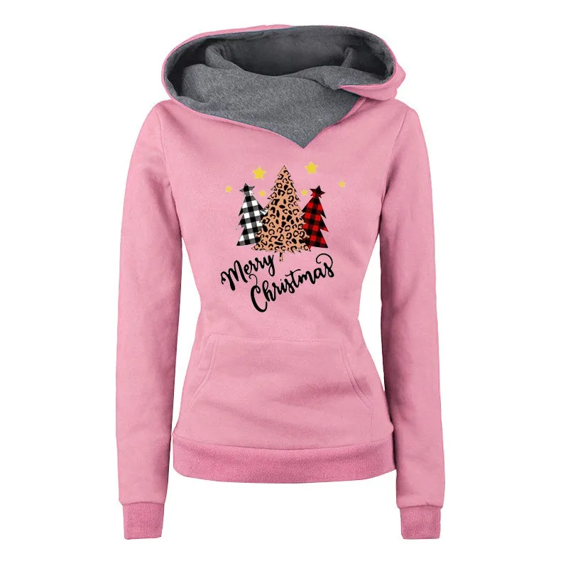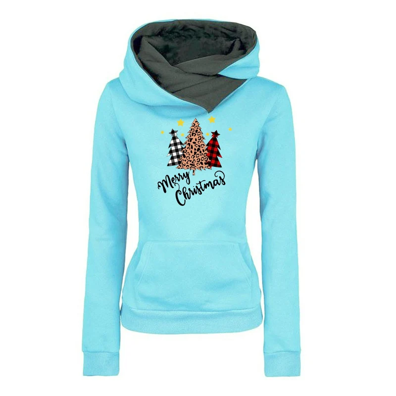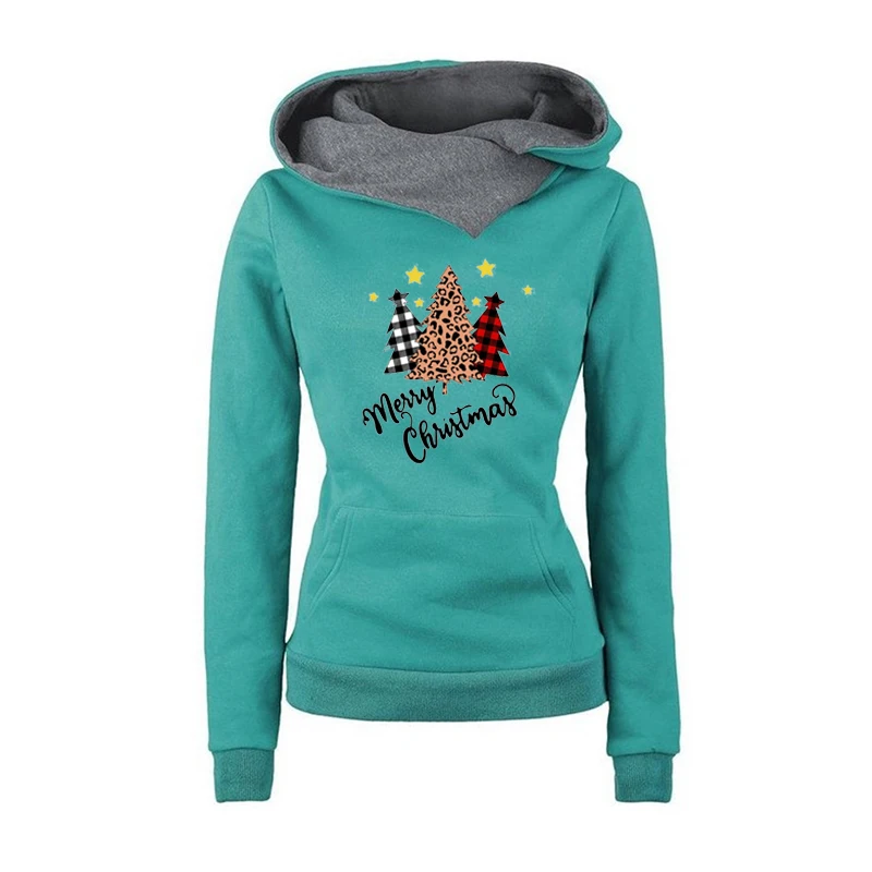 Женские флисовые толстовки с капюшоном, осенняя Зимняя мода 2021, большие размеры, женские пуловеры, топы с теплым карманом, Рождественский принт с капюшоном