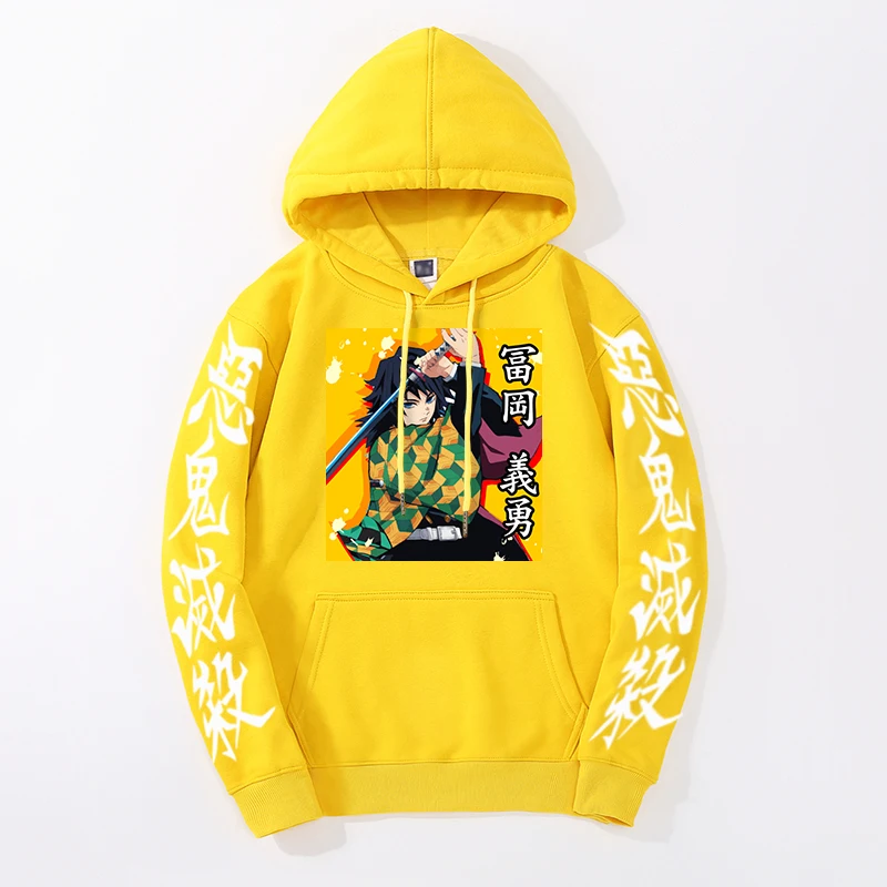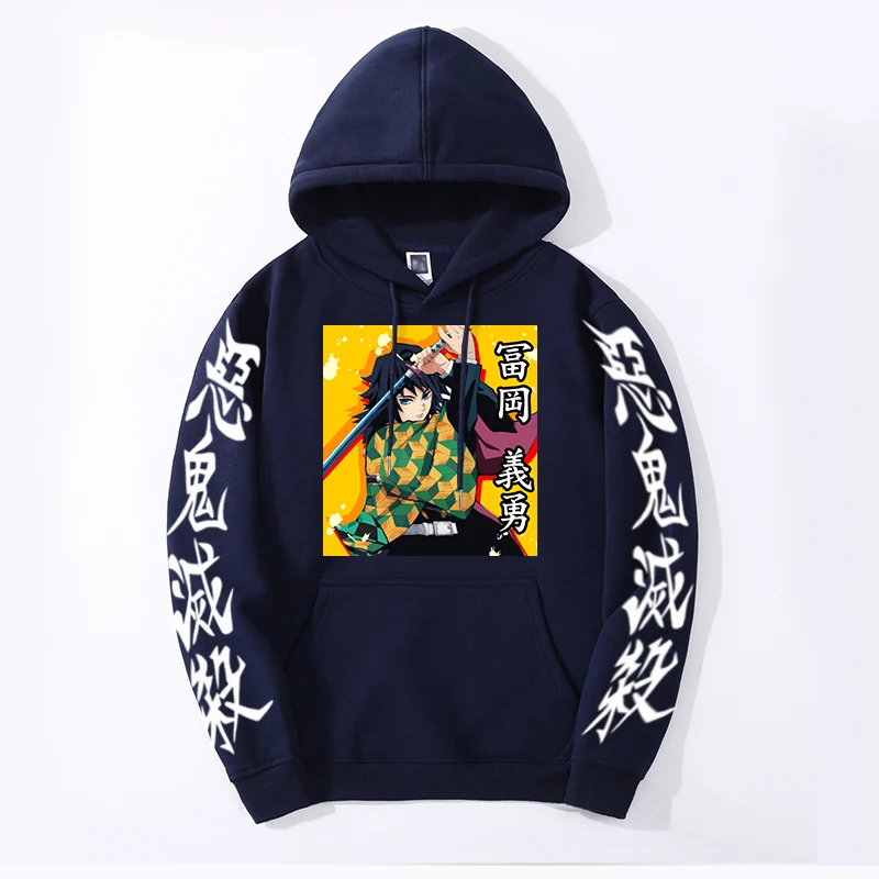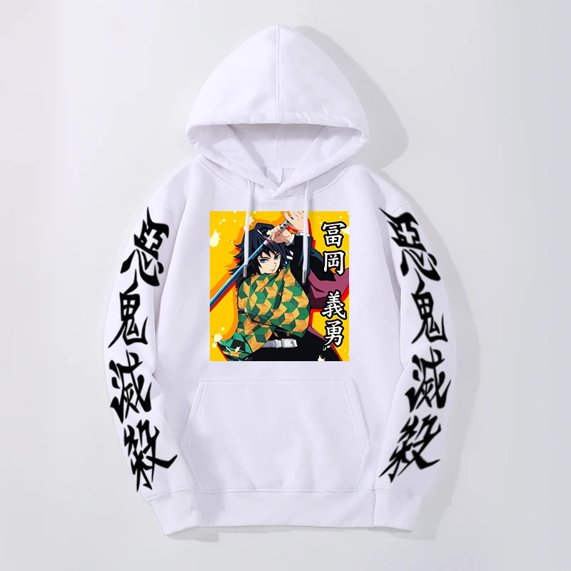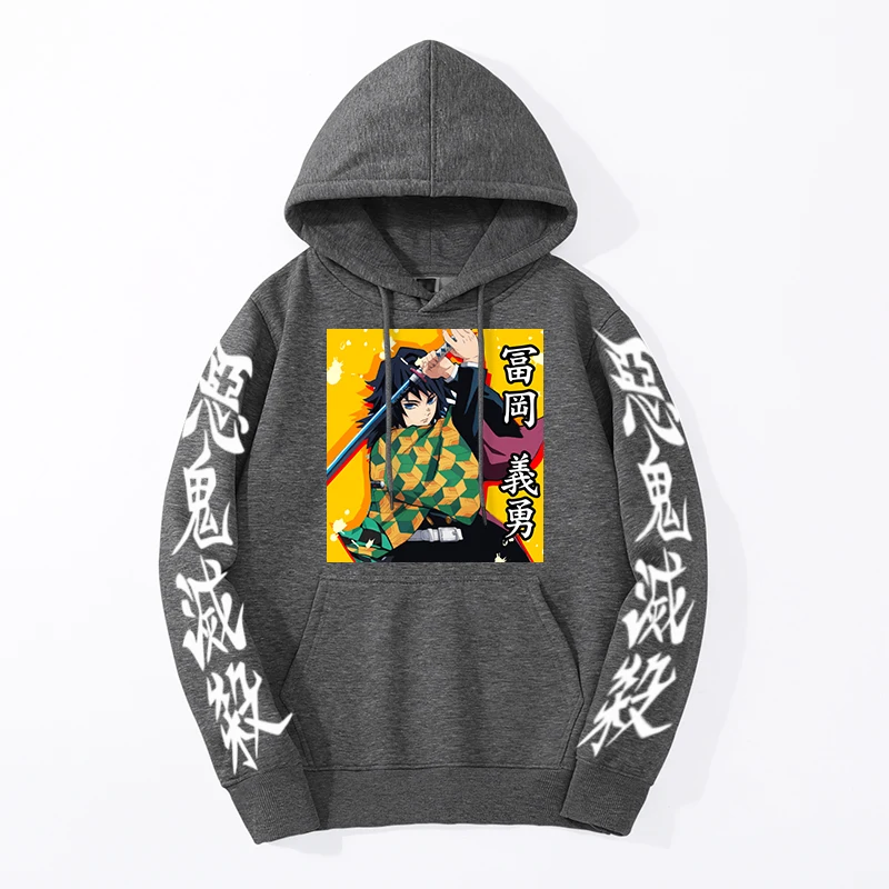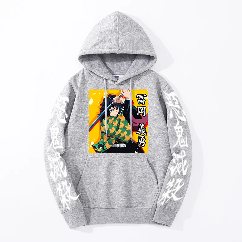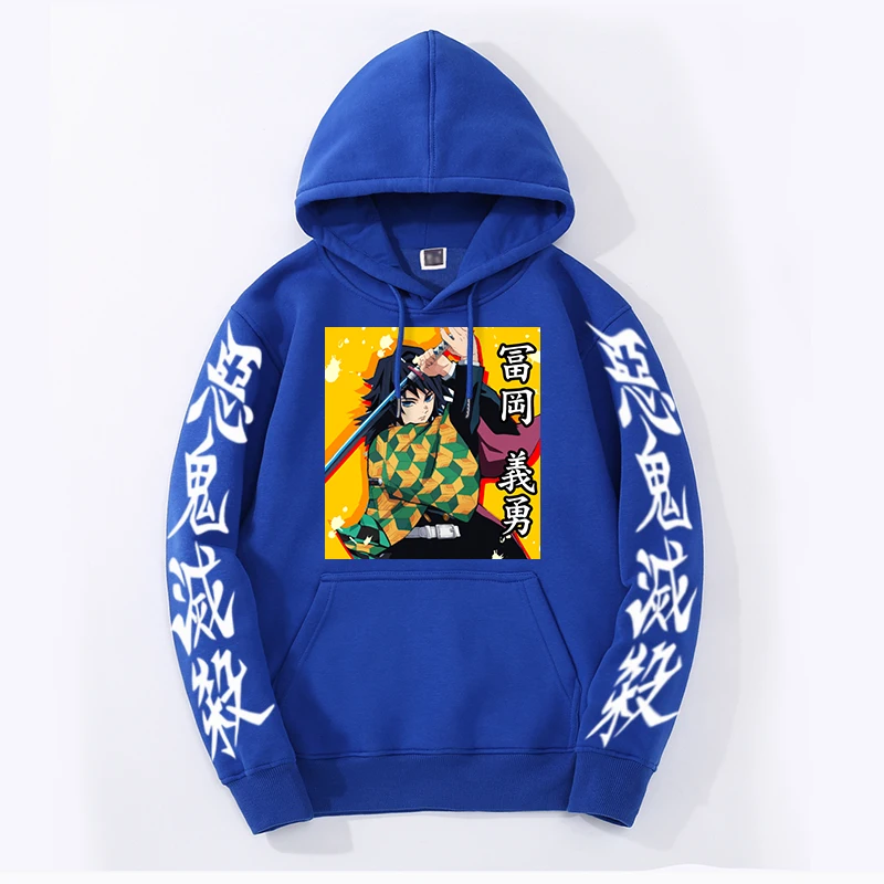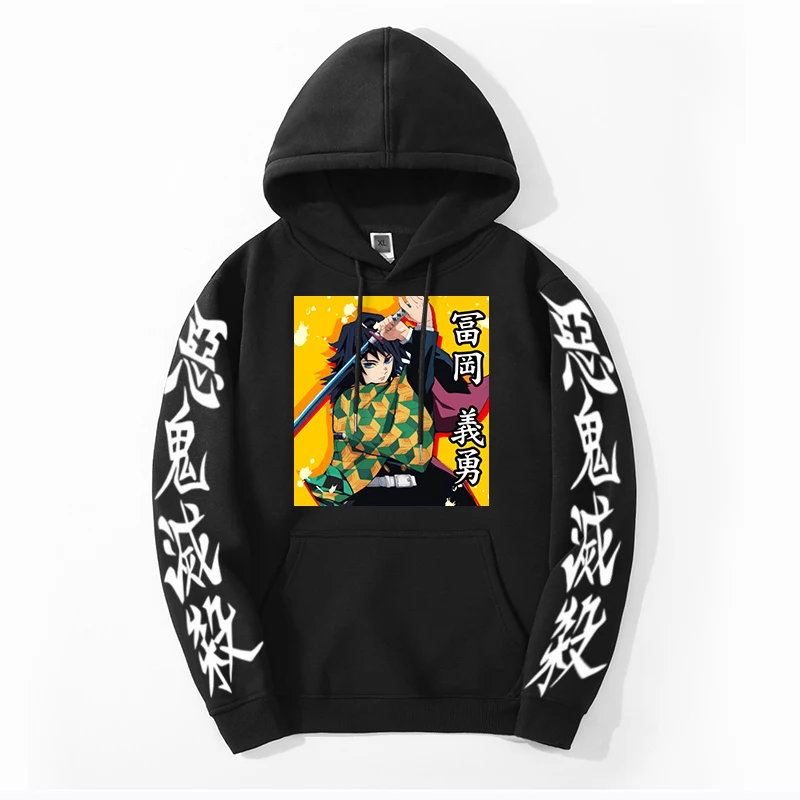 Толстовка Giyuu мужская с капюшоном, свитшот с принтом демонов, убийца аниме, японский мультфильм, стиль хип-хоп, уличная одежда, большие размеры, на осень