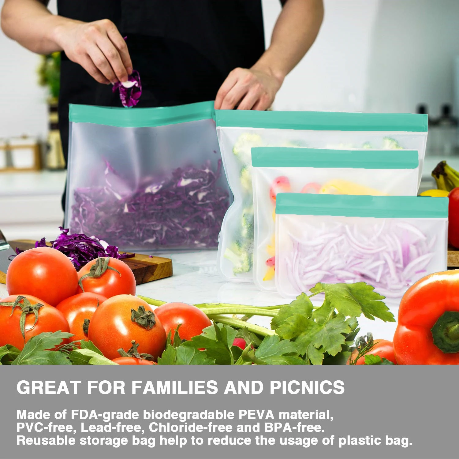 Описание:1. Многоразовые Сумки для ланча оснащены усовершенствованной технологией запечатывания ziplock, которая более герметична, герметична, водонепроницаема и гигиенична, идеально подходит для хранения и сохранения пищи. Благодаря улучшенной молнии и противоскользящей конструкции многоразовые сэндвич-пакеты для детей легче открывать или закрывать. Красочная молния многоразовых сэндвич-пакетов обогащает вашу жизнь более интересной и замечательной.2. Изготовлен из пищевого материала PEVA, многоразовые пакеты для хранения не содержат BPA, экономят нашу планету и экономят ваши деньги.3. Пакеты с морозильной камерой могут блокировать морозильник, сохраняя при этом свежесть и полный вкус, идеально подходит для замораживания мяса, курицы, рыбы, фруктов и овощей. Рекомендуется ручная стирка, так как посудомоечная машина повредит застежку-молнию в пакетах для хранения продуктов. Легко чистить с помощью щетки для бутылки и положить мешки на верхнюю часть кружки или чашки, чтобы сушить на воздухе.4. Многоразовые пищевые пакеты отлично подходят для маринования мяса, приготовления еды, замороженных продуктов, хлопьев, печенья, вязальных материалов, канцелярских принадлежностей и сэндвич-пакетов, закусок, обеда, овощей, фруктов, детского питания, косметики, ювелирный макияж, канцелярские принадлежности, путешествия и многое другое. Прозрачный дизайн позволяет быстро смотреть на содержимое внутри,