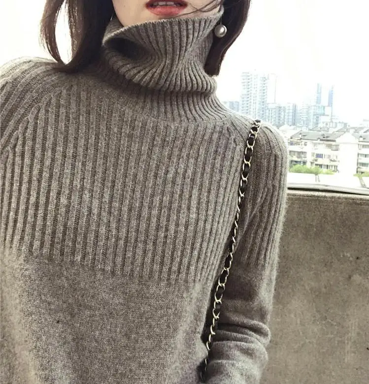 Осень-зима 2021, новая кашемировая водолазка European station, Женская свободная вязаная тонкая универсальная водолазка