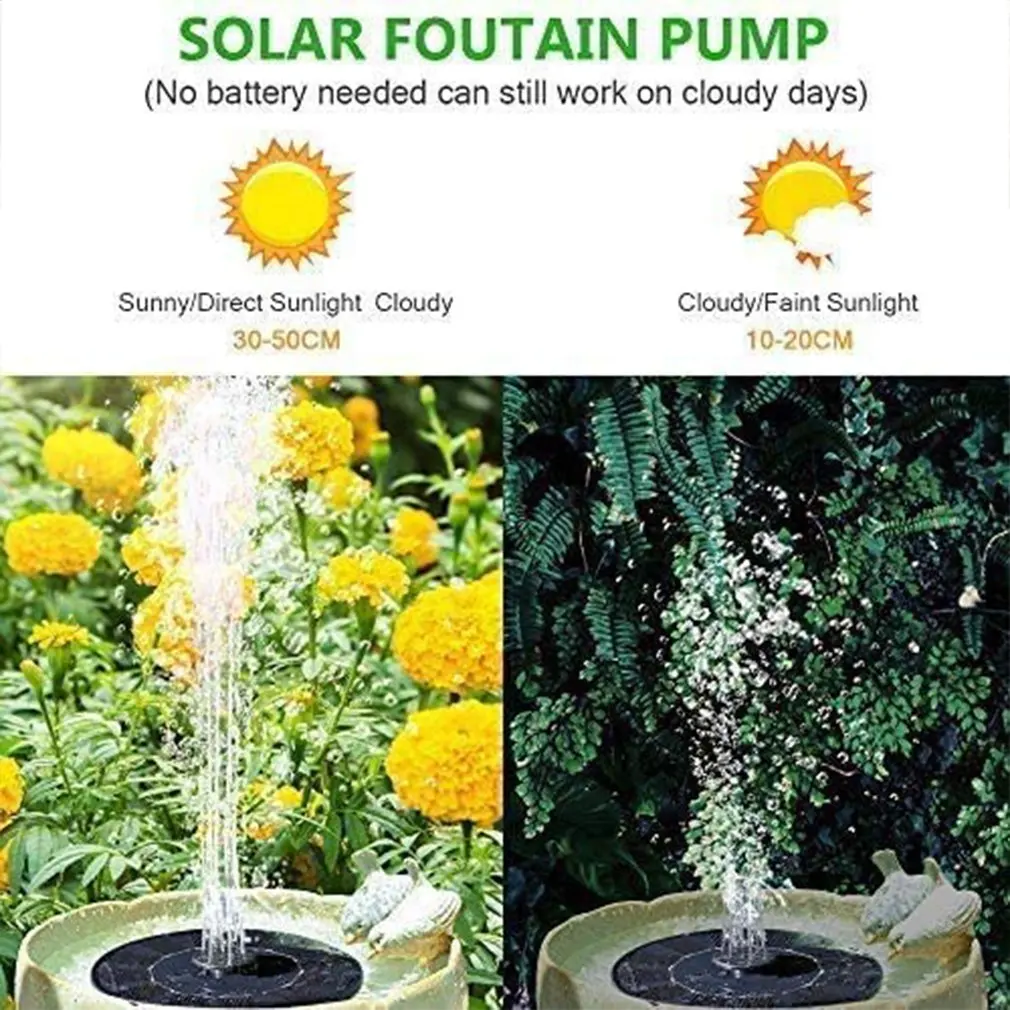 1. Производительность: подключение различных сопла, высота распыления воды будет отличаться. Когда солнечная панель получает достаточное количество солнечного света, водяной насос начнет работать в течение 3 секунд.