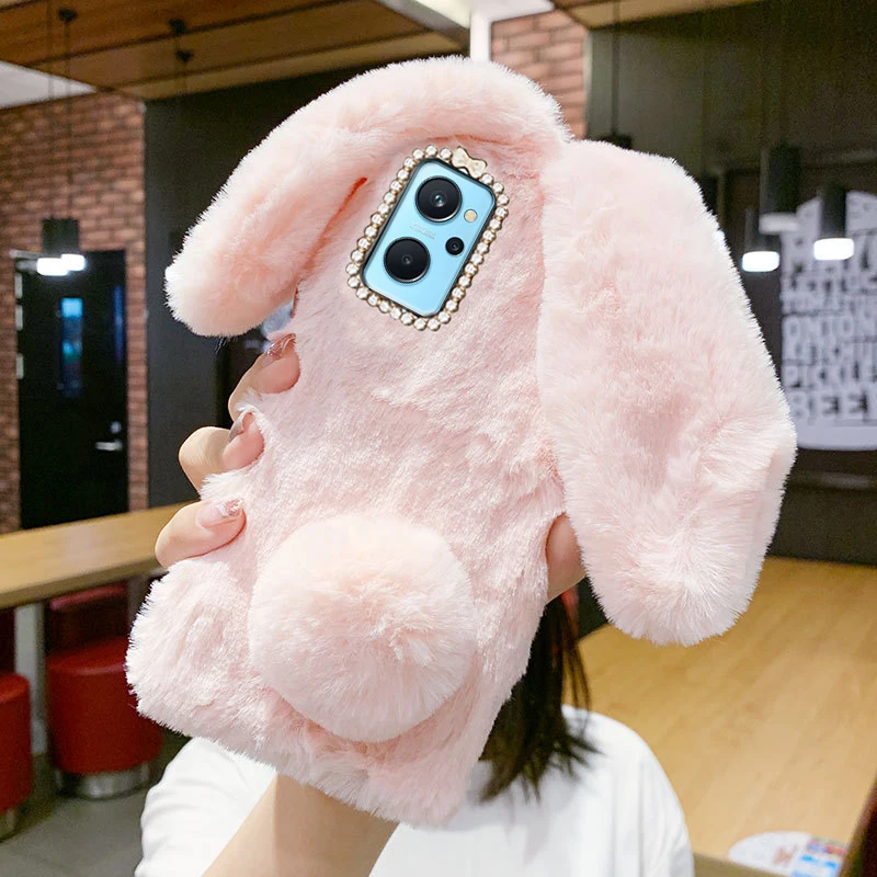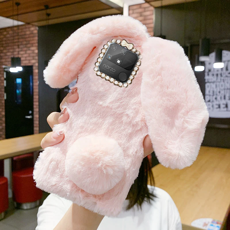 Чехол Realme 9i, модный мультяшный милый пушистый мех кролика, силиконовый чехол для Realme Narzo50a, пушистый мех кролика, чехол для Realme Narzo 50A, чехол RMX3430, защитный чехол для телефона Etui для Realme Narzo 50i, теплый чехол для телефона, силиконовый защитный бампер для телефона realme Narzo 30 5G плюшевый чехол мобильный телефон сумки.