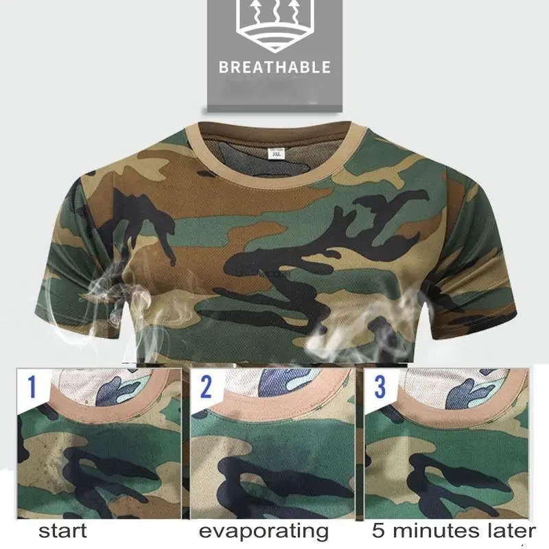 Быстросохнущая камуфляжная футболка, летняя мужская футболка с коро...