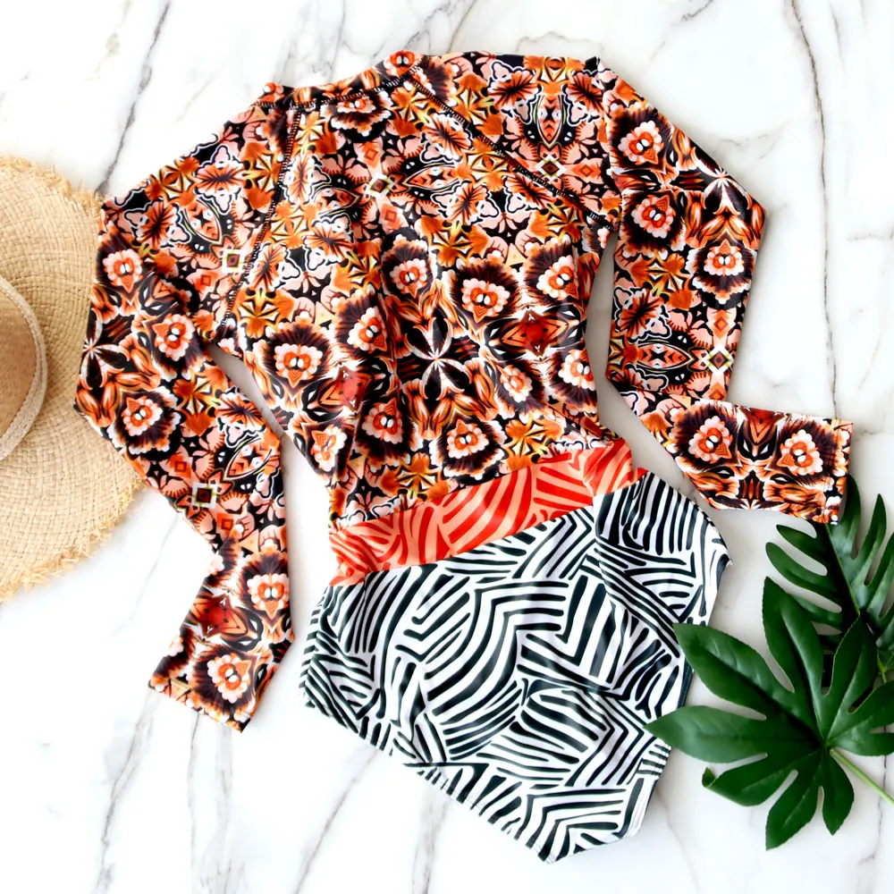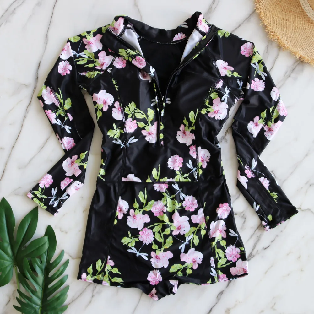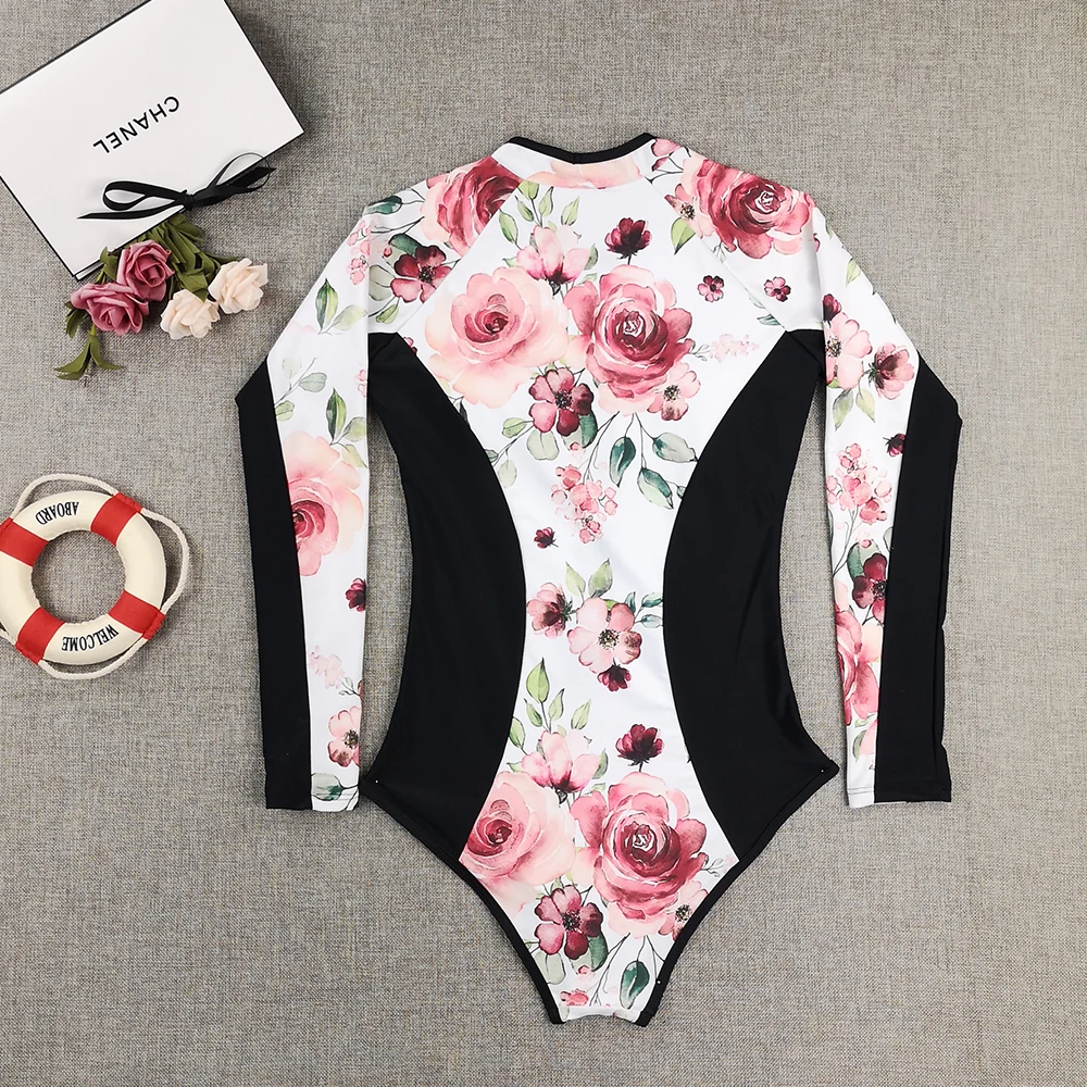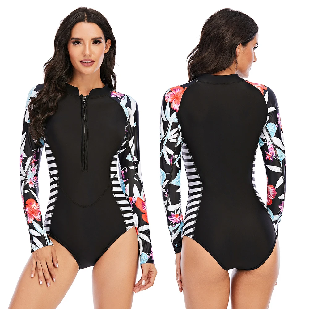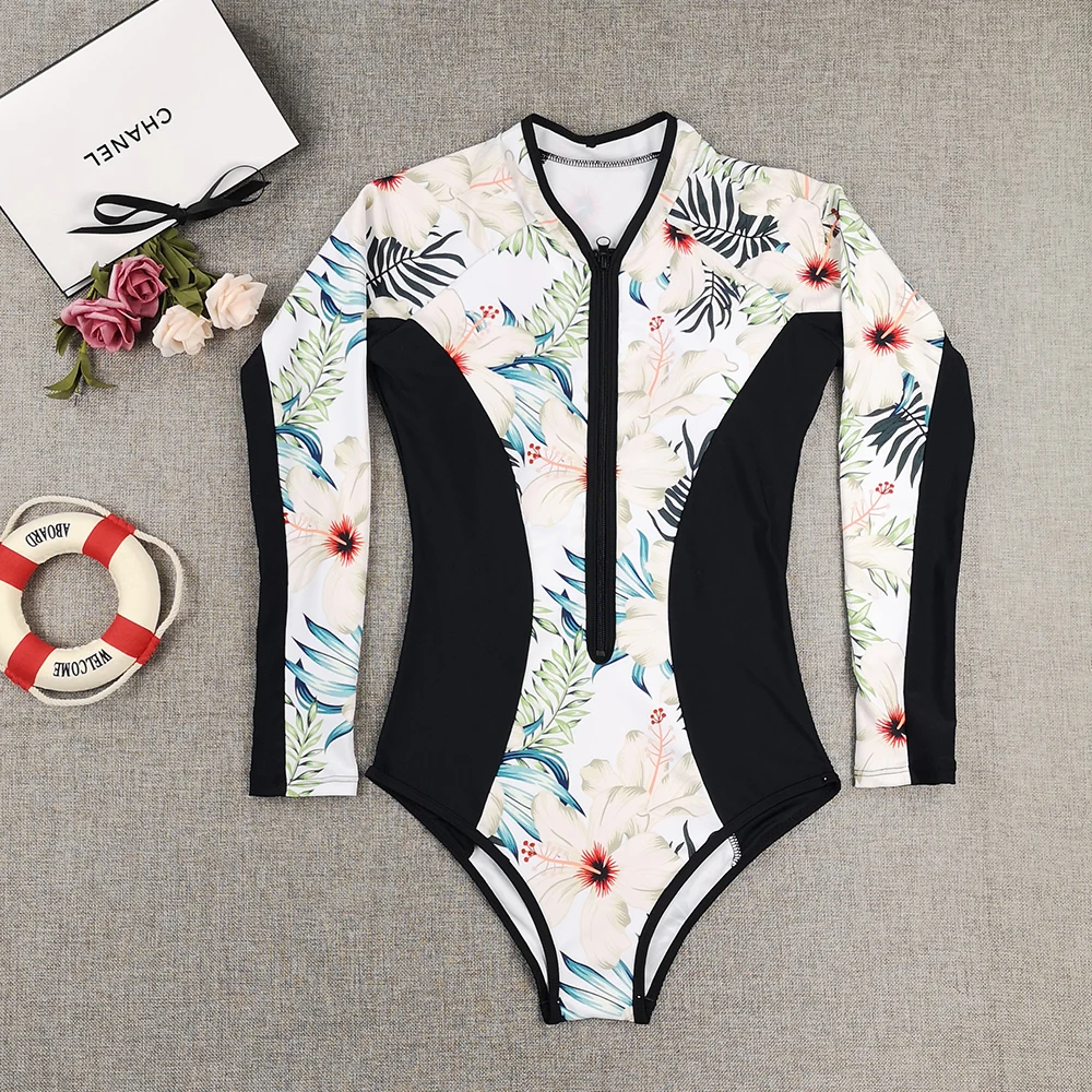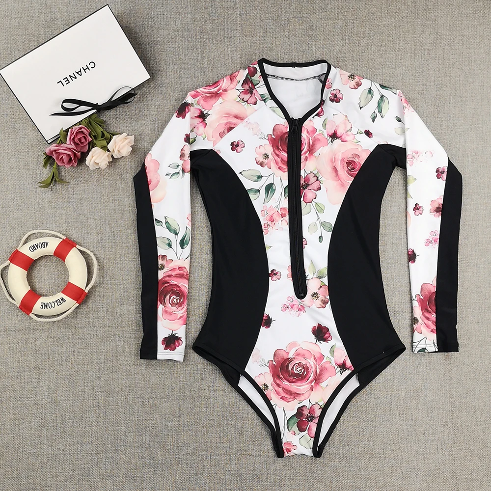 2022 цельные купальные костюмы с длинными рукавами, одежда для плавания, женский купальный костюм, новый купальный костюм с цветочным принтом, костюмы для серфинга UPF50 +