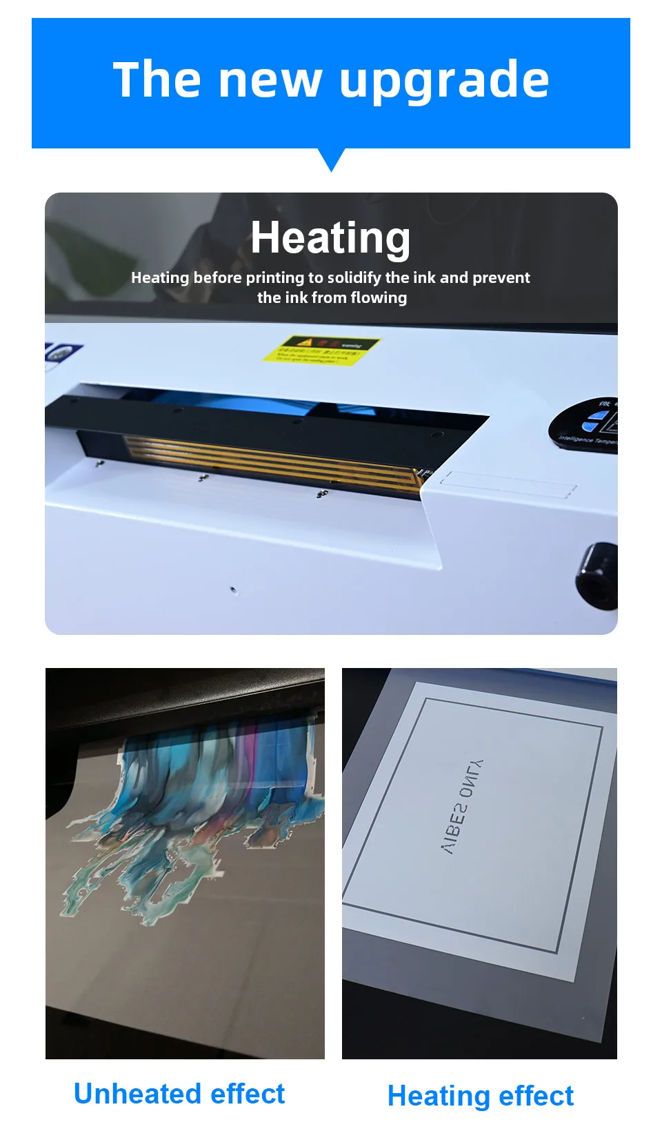 1. НагревНагрев перед печатью для закрепления чернил и предотвращения протекания чернил2. Система перемешивания белых чернилПеремешайте белые чернила, чтобы предотвратить выпадение осадков и уменьшить засорение чернил.3. ВодонепроницаемыйПринт очень прочный и водонепроницаемый.