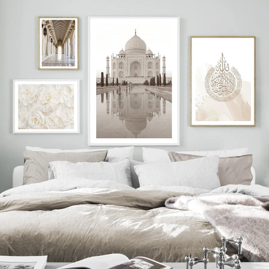 Тадж-Махал, исламские религиозные строения, листья, цветы, настенное искусство, холст, живопись, плакаты и принты, настенные картины для декора гостиной