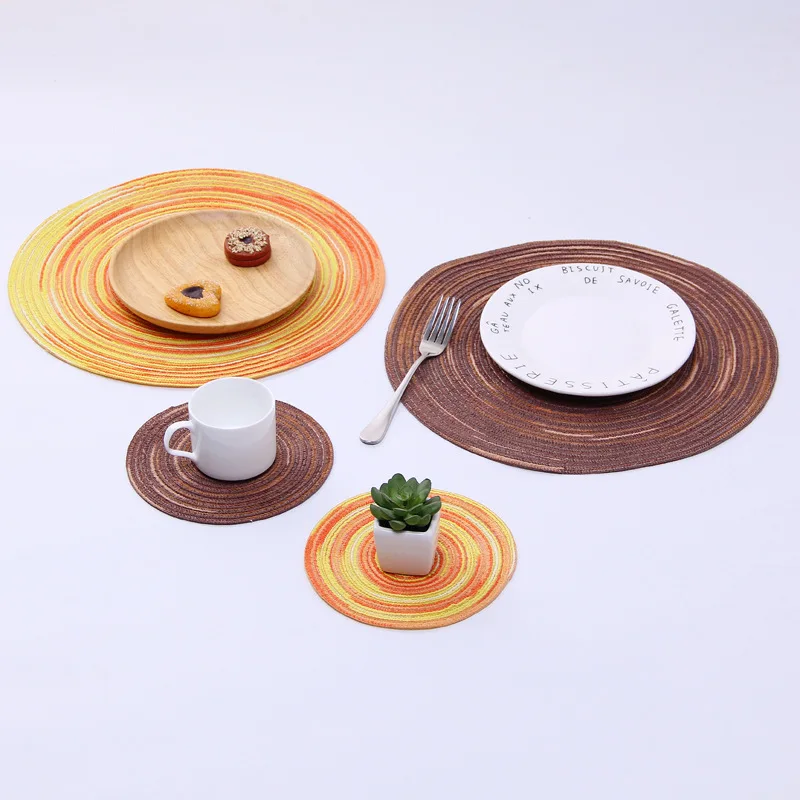 Круглая обеденная тарелка Ins, цветной хлопковый тканый набор подставок, нескользящая Нескользящая термоизоляционная подкладка, украшение стола